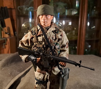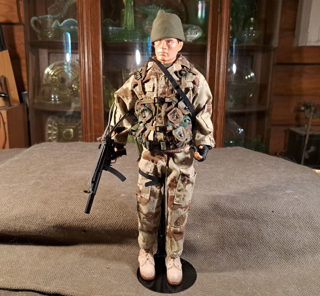 Another relatively modern figure, if you consider 35 years ago modern. This a 1/6 scale figure that is the same as GI Joe. He is armed with a HK 94 I think, it is 9mm submachine gun. Also an M16. This figure will go well with the armored Humvee I bought a few months ago It will all be very nice.