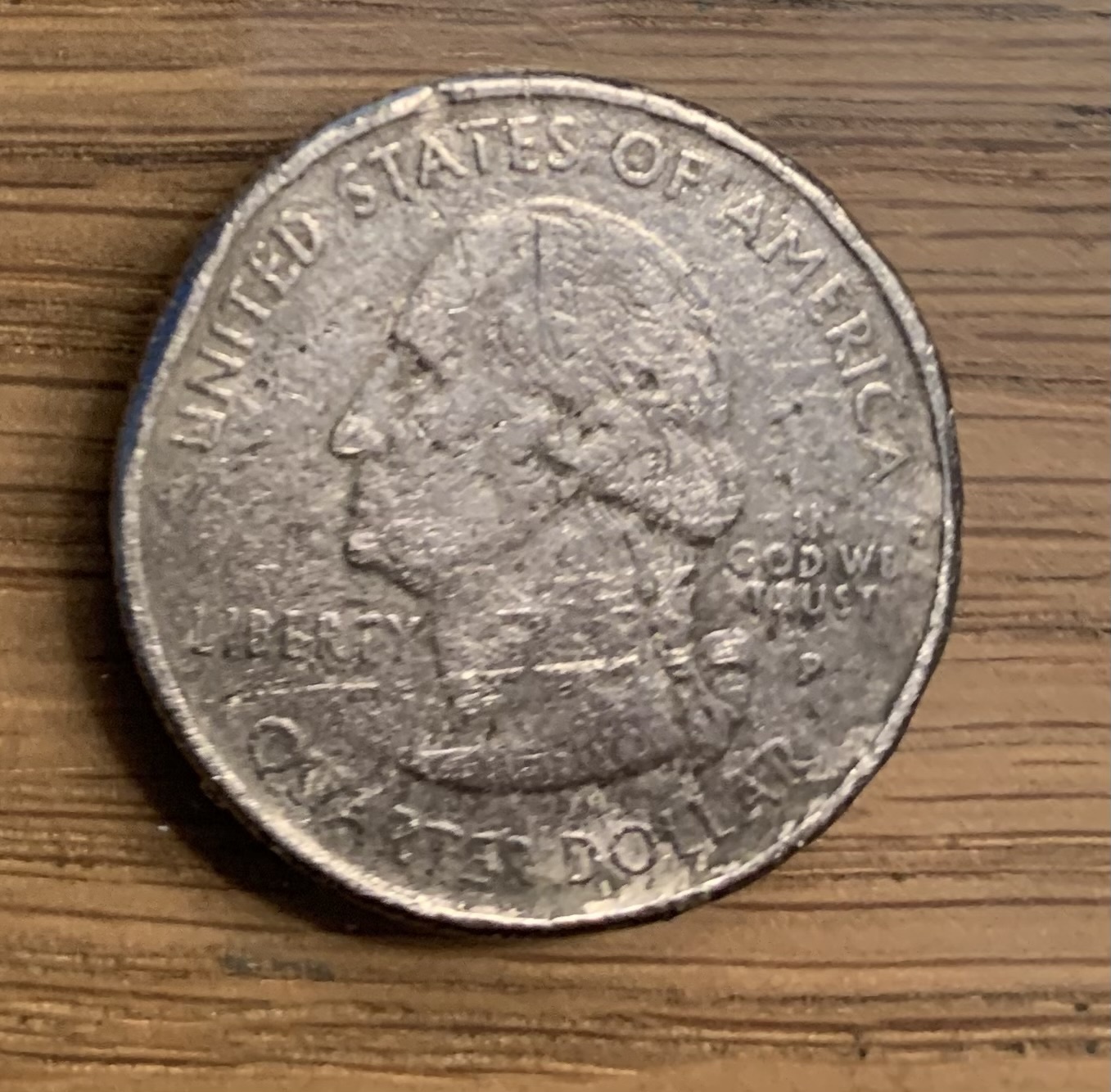 What I find interesting about the damage to the coin is that the section of the reverse that normally contains the mint year, and the motto "E PLURIBUS UNUM" is completely scratched, and unreadable.