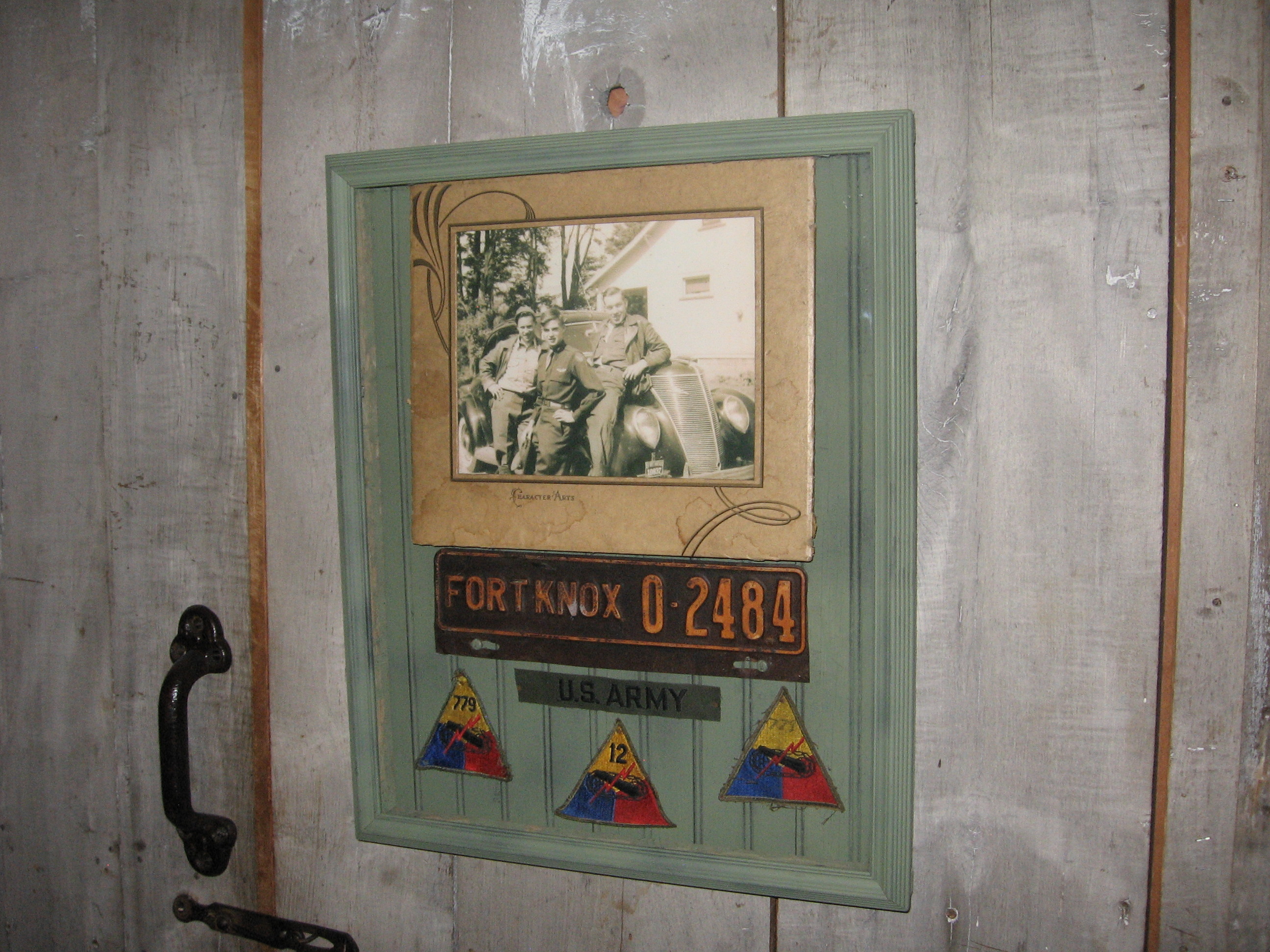 My Dad (on the right on the car fender--guessing 38 Ford??) and 2 army buddies on leave in 1944 from Ft. Knox, 12th armored div. I made this shadowbox to honor them. Dad ended up in the Philippines late in the war.