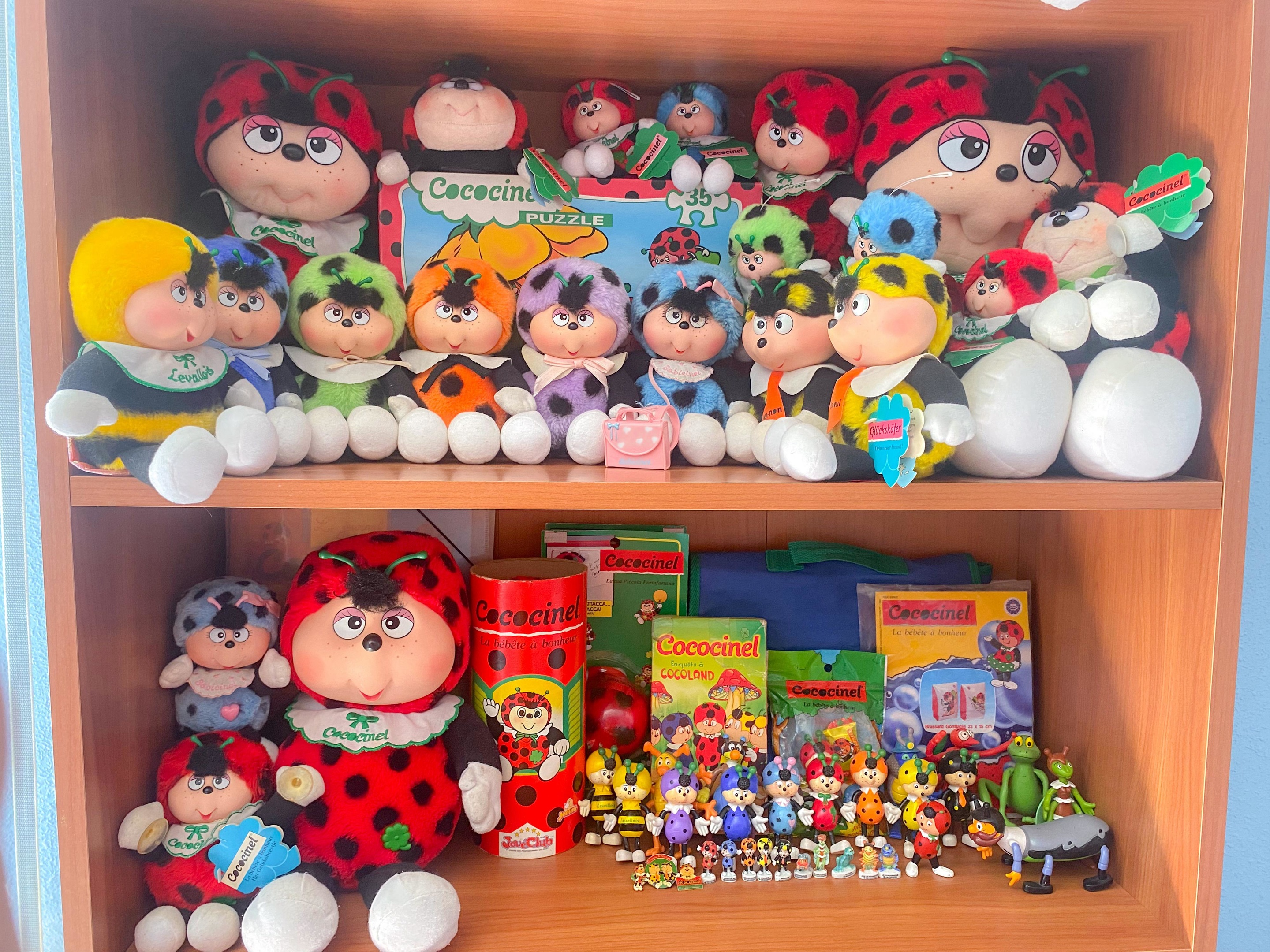 This is a part of my Cococinel collection, which I consider my sacred sanctuary. These items are valuable, ultra rare, and practically impossible to find. From the original French friends of Cococinel to dolls in their original packaging from over 30 years ago, each piece is an invaluable treasure to me. This corner of my collection is a true homage to the magic of Cococinel.