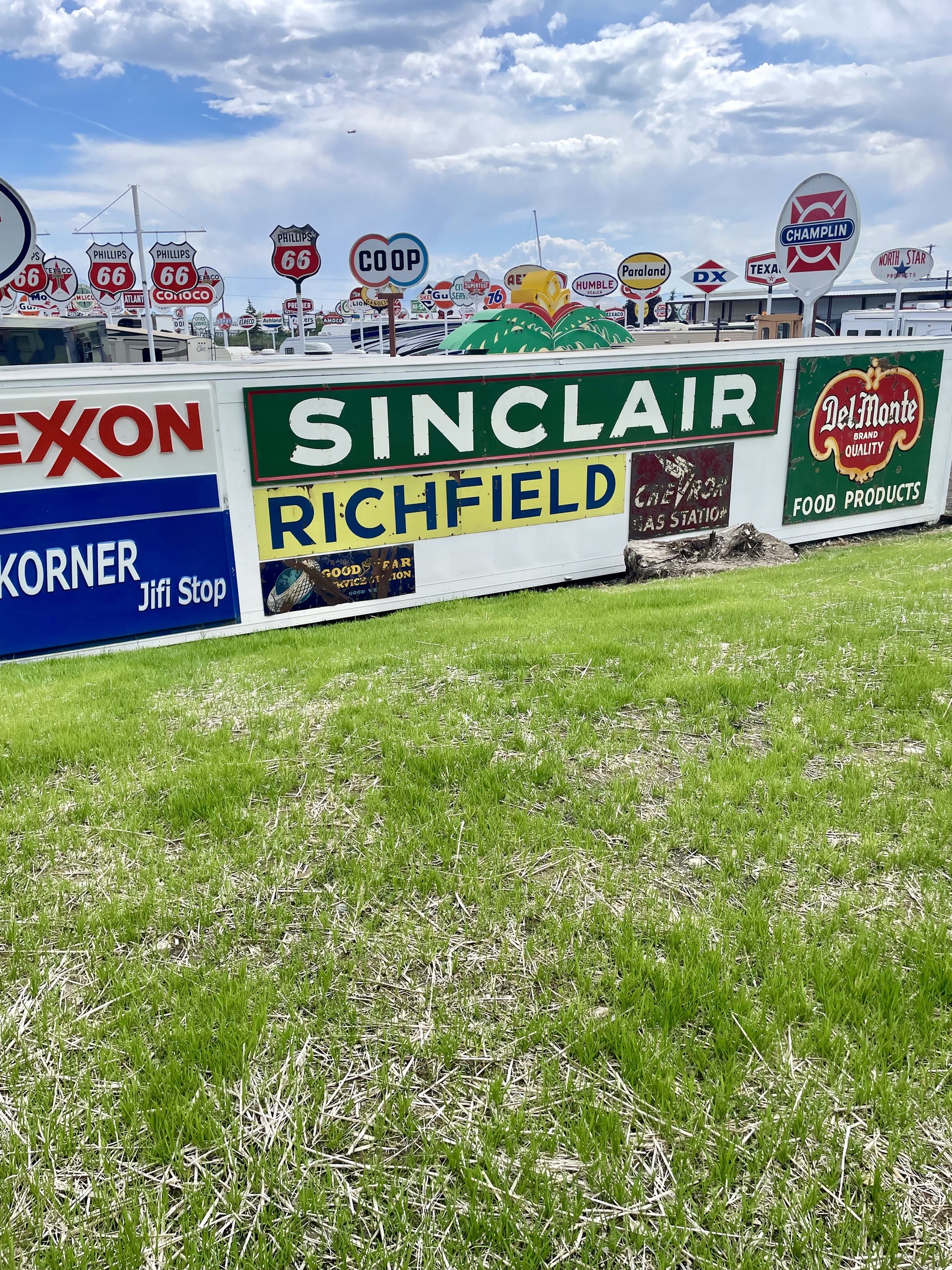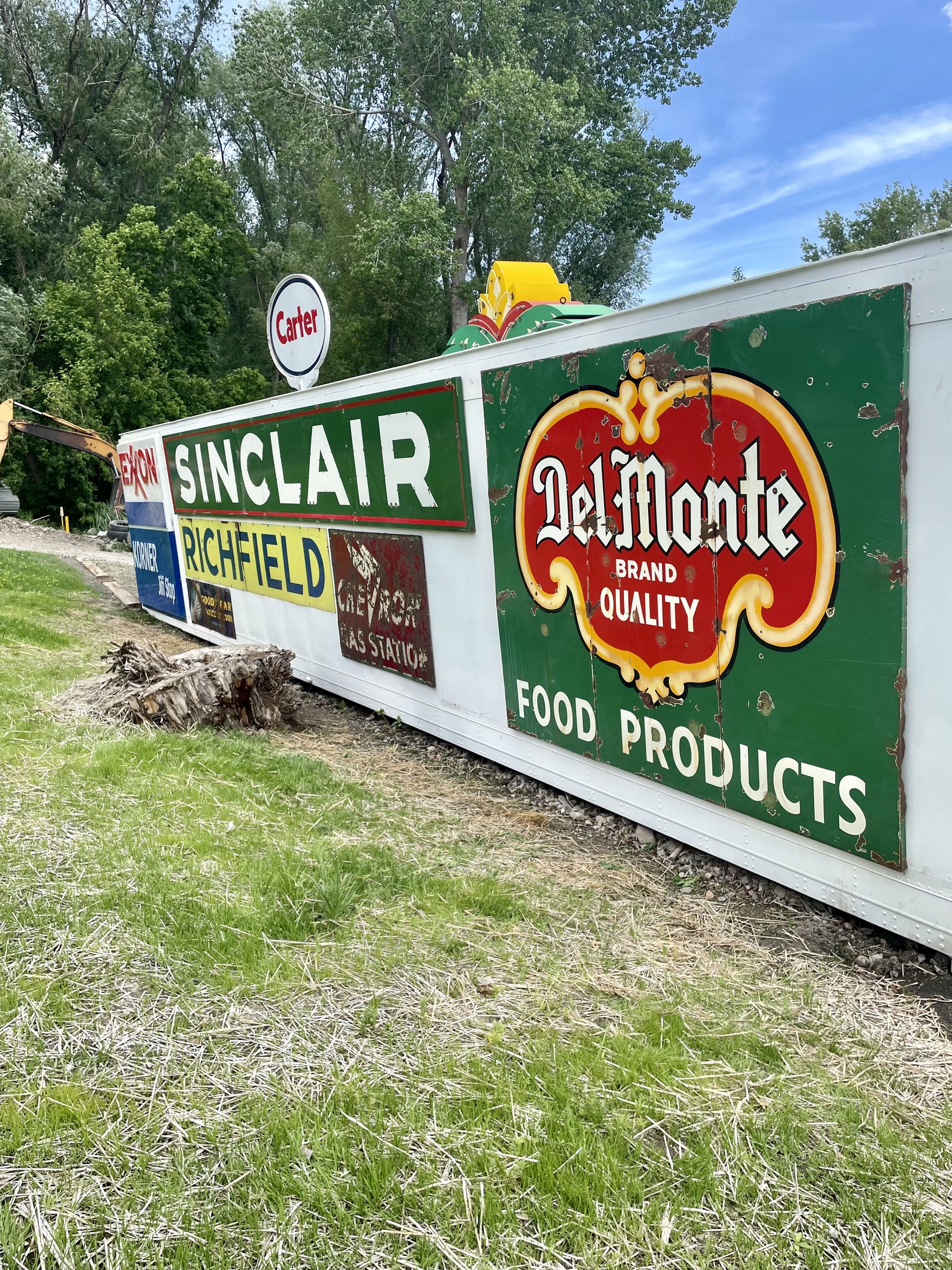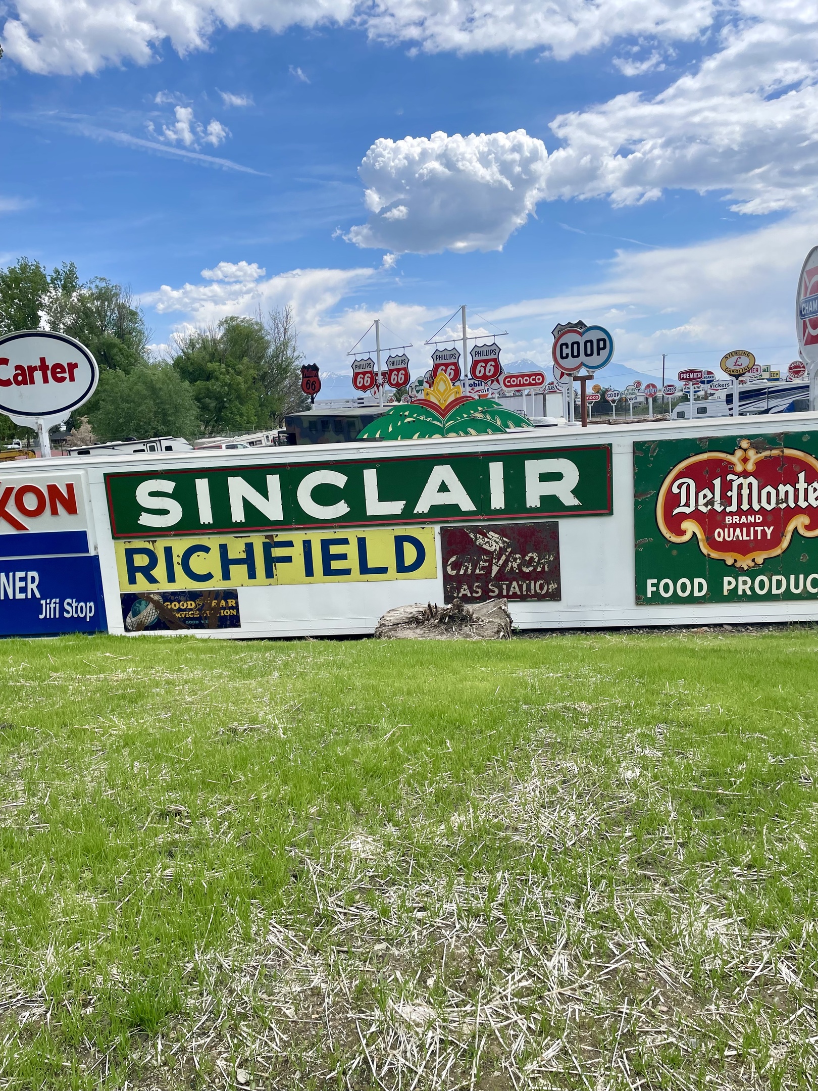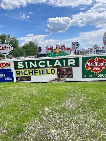 We got the beautiful 24’ neon Sinclair Gas sign many years ago in Kansas and haven’t found the right place to hang it till today. It’s on the back of the storage shed for the Sparks Museum & Event Center. Hopefully the new lawn will be up and ready to cut in a Week or two.
