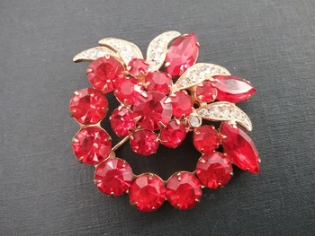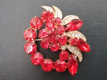 What a gorgeous brooch! I love those orange rhinestones, which by the way are a favorite color of mine and the ribbons are a lovely accent. Eisenberg never fails on beauty!
