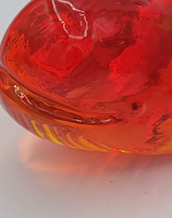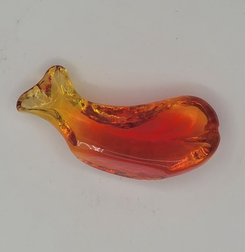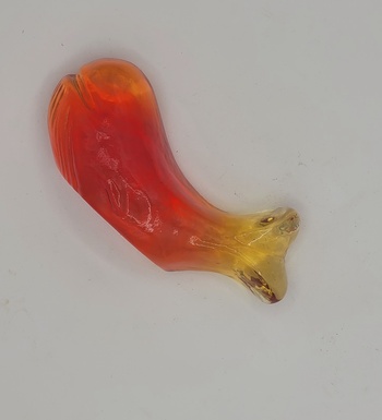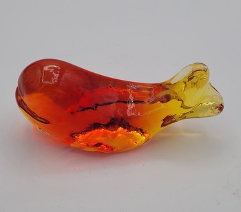 This is a blenko paper weight that looks like a smiling whale. It could also be considered a figurine. The amberina is very thick and rich in this peace. Blenko does amazing work.