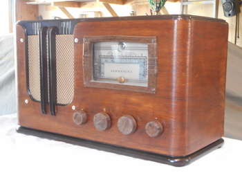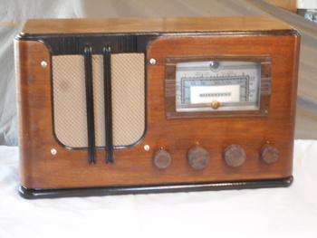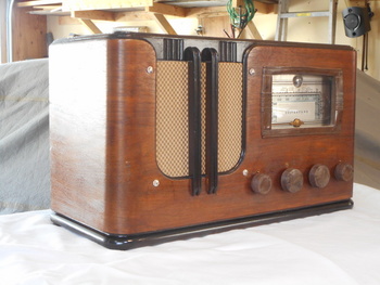 I redid the cabinet in toned lacquer. The radio has the original knobs and grill cloth..