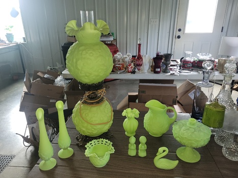 Fenton's Lime Sherbet Satin Glass is so popular that "R" has a dedicated section for it: