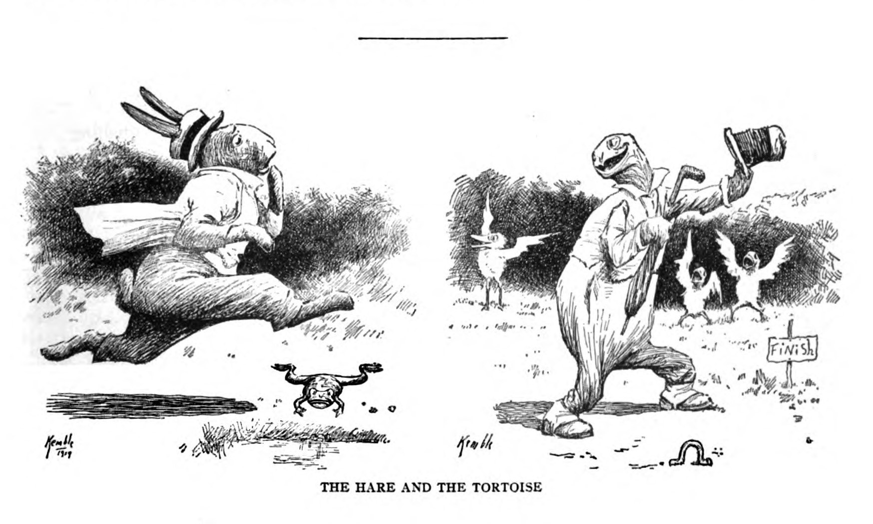 The Hare and the Tortoise, 1925-05-00-p745, St. Nicholas Magazine, illustration by Kemble.