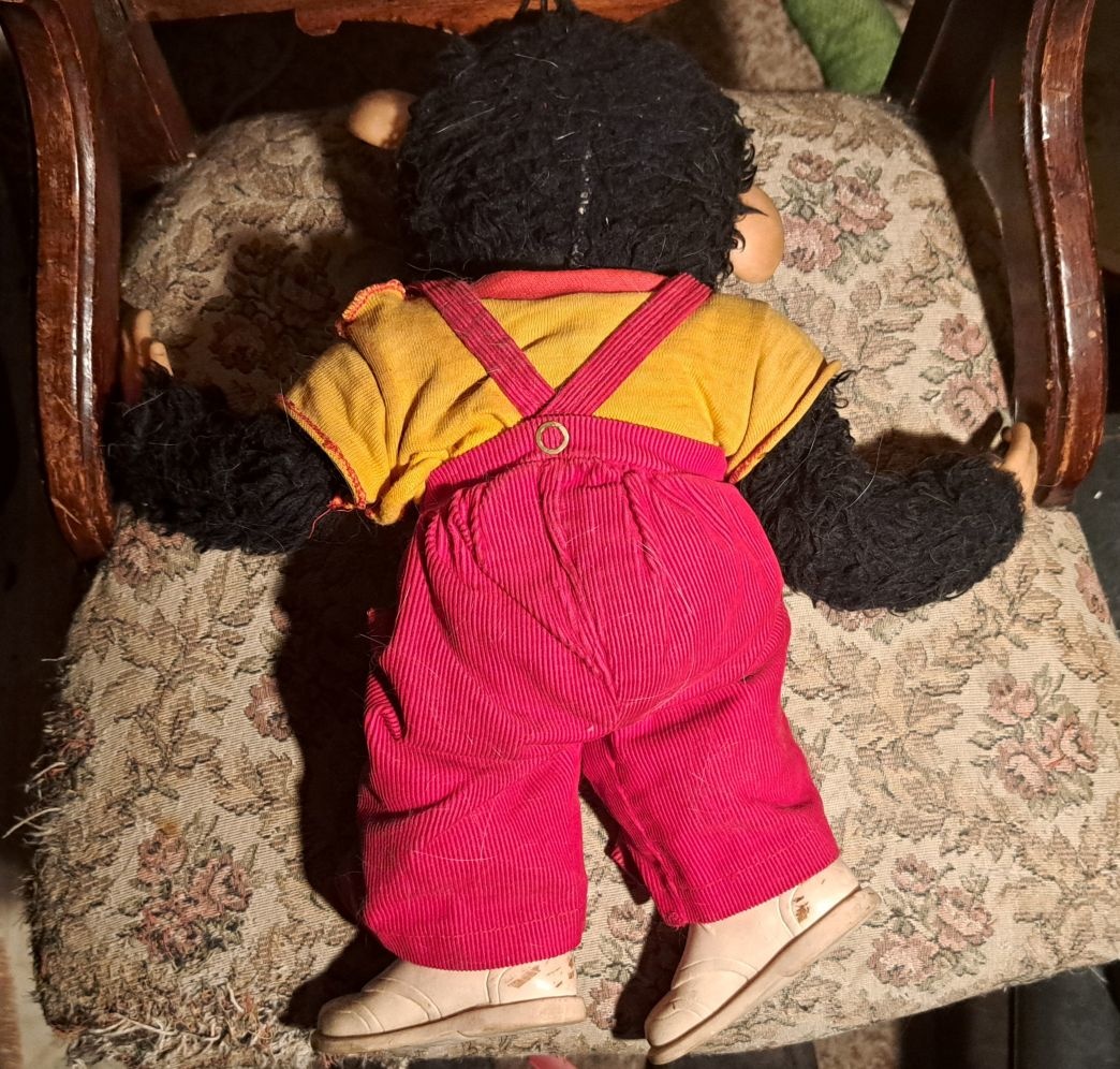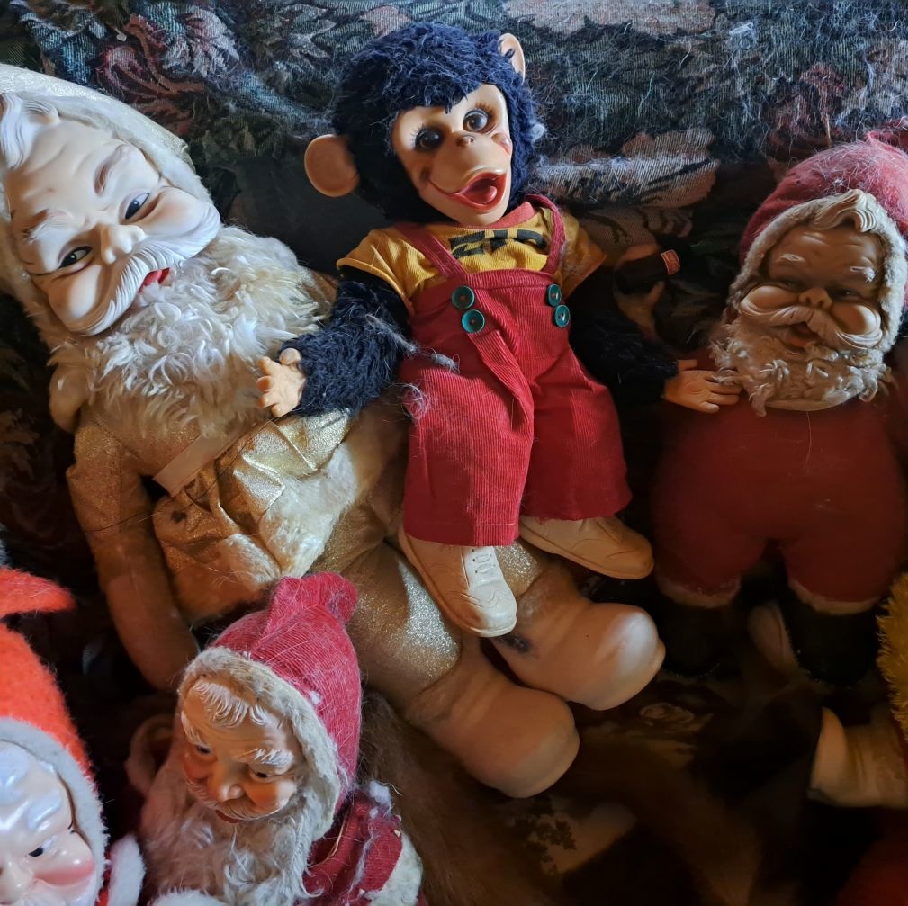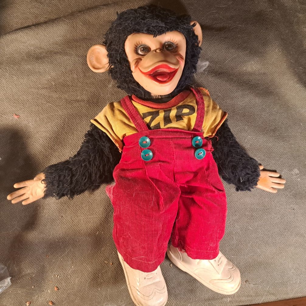 Rushton is mostly known for the rubber faced Santa dolls, especially the one holding a bottle of Coke. This Zip is about 15" tall and has all of his clothes except the hat.