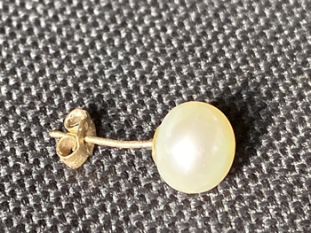 Hello I’ve just rediscovered this lovely pearl earring , most of the pearls have had the gold taken , but this one still has the post which is marked 9 c , looks really old and I normally only see antique items marked like that. It’s quite big and looks like a good quality pearl, no idea what kind it is or if it’s worth much. But I think pearls are back in fashion and I’ve even seen grown men wearing pearl necklaces on TV, how times have changed LOL
