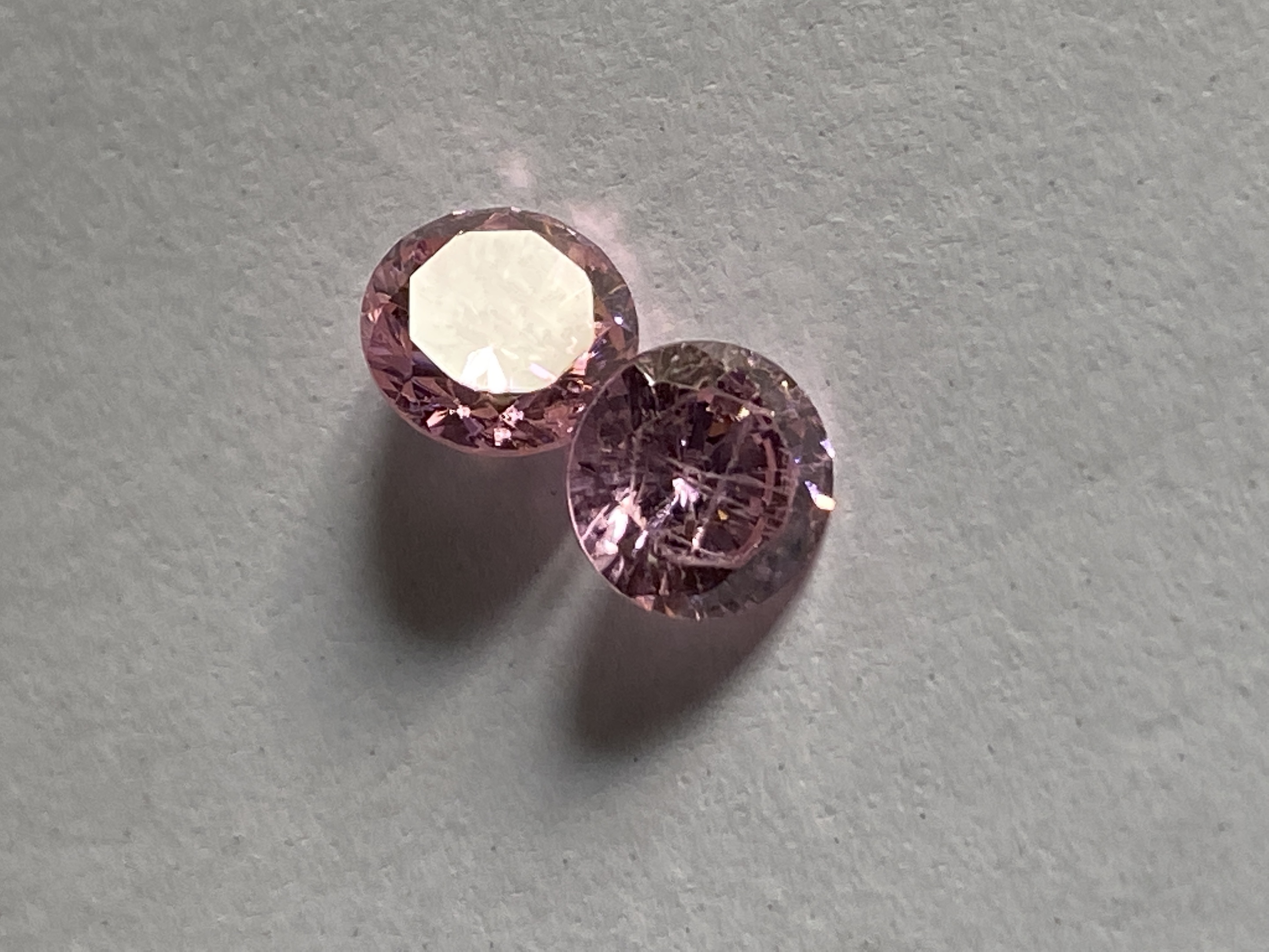 Hello I’ve still got my stones out and saw a bag of pink ones, these 2 I had bagged together as they both look alike, I don’t know if they was a pair, but when I just took the pictures I noticed one looks like it has signs of age, but not got my loop at the moment. Not sure what they are yet