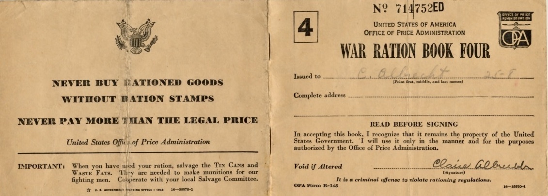 voice record from my dad & ration coupons my mother had saved. I have over 500 letters sent between my young parents.