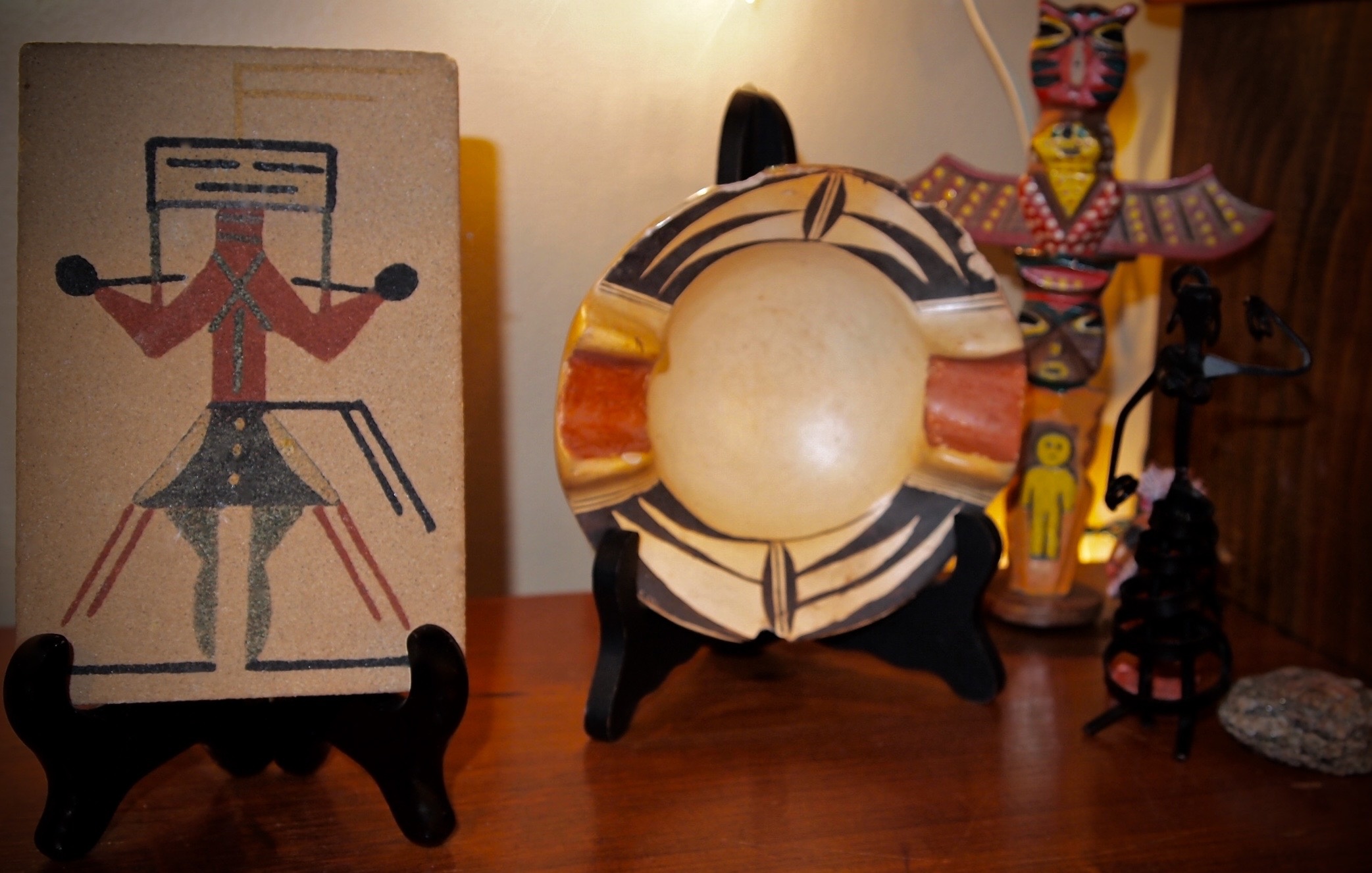 The 1st is a shelf in my bookcase and following are a collection of club tickets for some bands, next is a selection of artifacts from a trip to the West in 1973 and #4 is a shelf in my credenza.