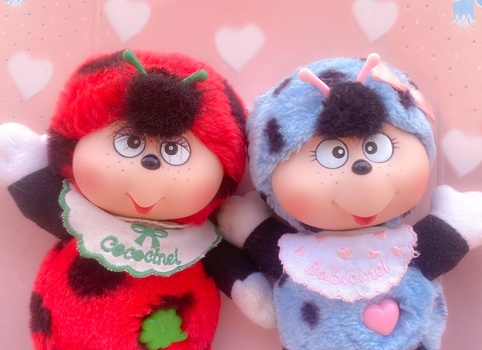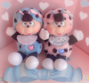 Babicinel is the co-protagonist of the cartoon Cococinel, she is Cococinel's sister, she began to appear in season 2, and the only merchandise we have found of her are the dolls in her characteristic pale blue color with Babicinel's characteristic accessories which are her small pink bow on the side of her head, bib with pink hearts embroidered with her name on it, and of course her magic heart made like a button, since in the series Babicinel has a pink magic heart with which she fights against evil, we have also found the other pink version doll, this is because in the series Babicinel with her pink magic heart changes color to pale pink and that makes her more powerful, and her accessories turn pale blue like her so this is reflected in the doll too, despite her being a main character we have not found more merchandise or figures of Babicinel despite her name being legally registered as a brand apart from Cococinel's, being the second character of Cococinel registered as a brand