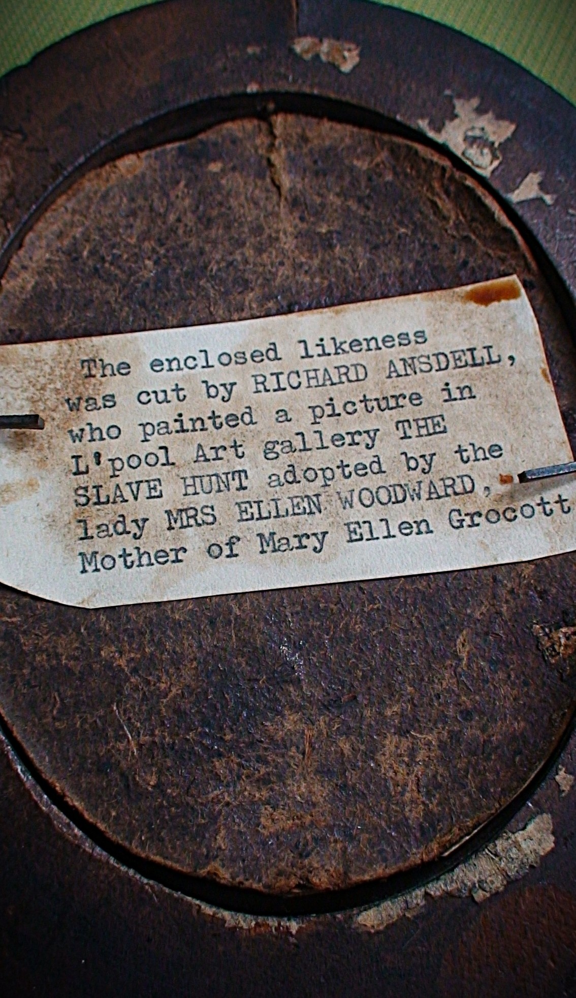 This silhouette believed to be of Elizabeth Woodward, mentioned on reverse (As Ellen Woodward).