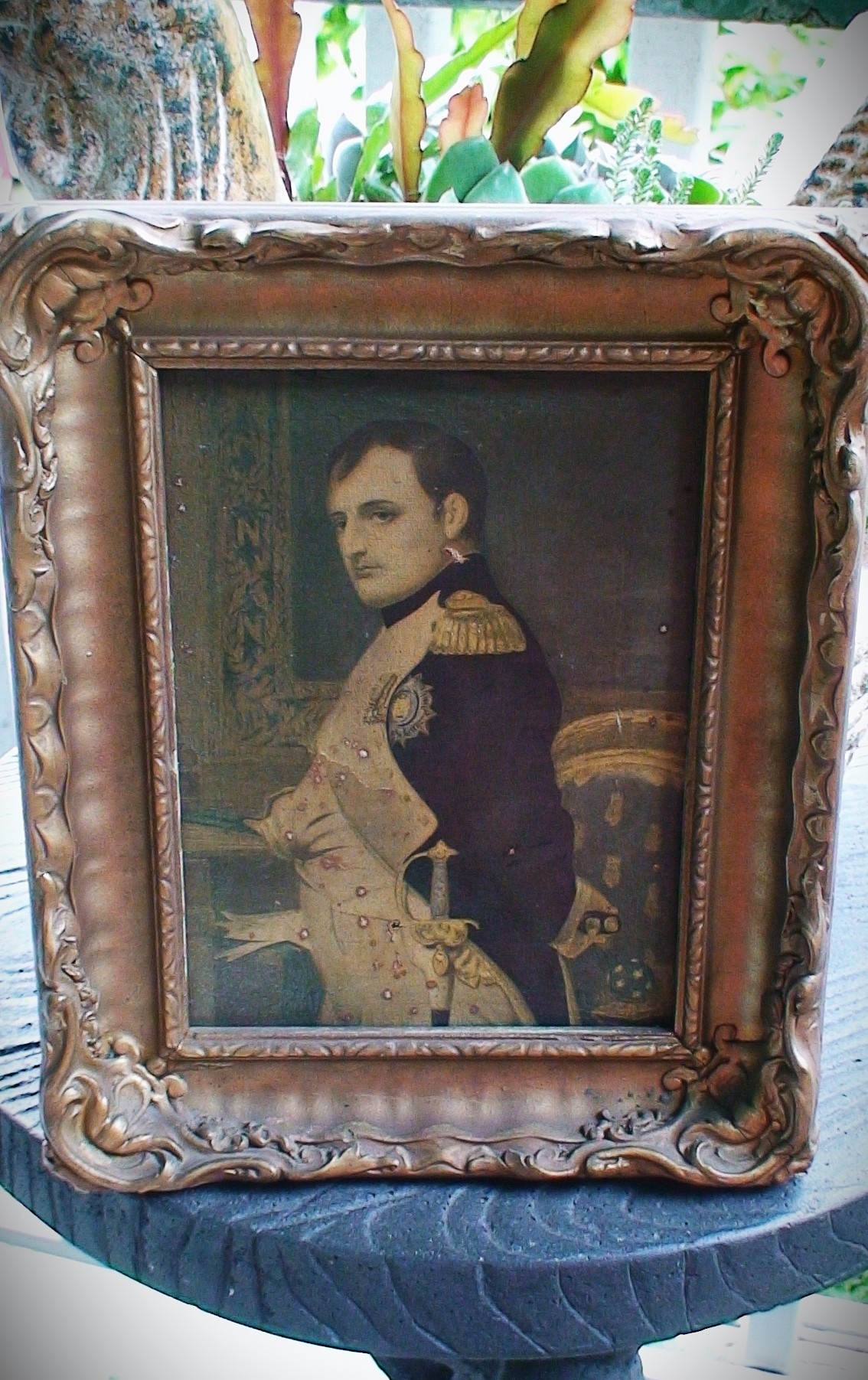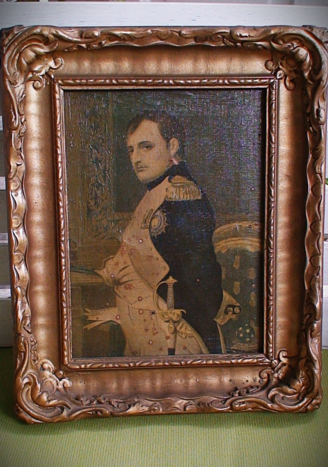 100-year-old reproduction (1915) of Napoleon Bonaparte on canvas using the Mazart process.
