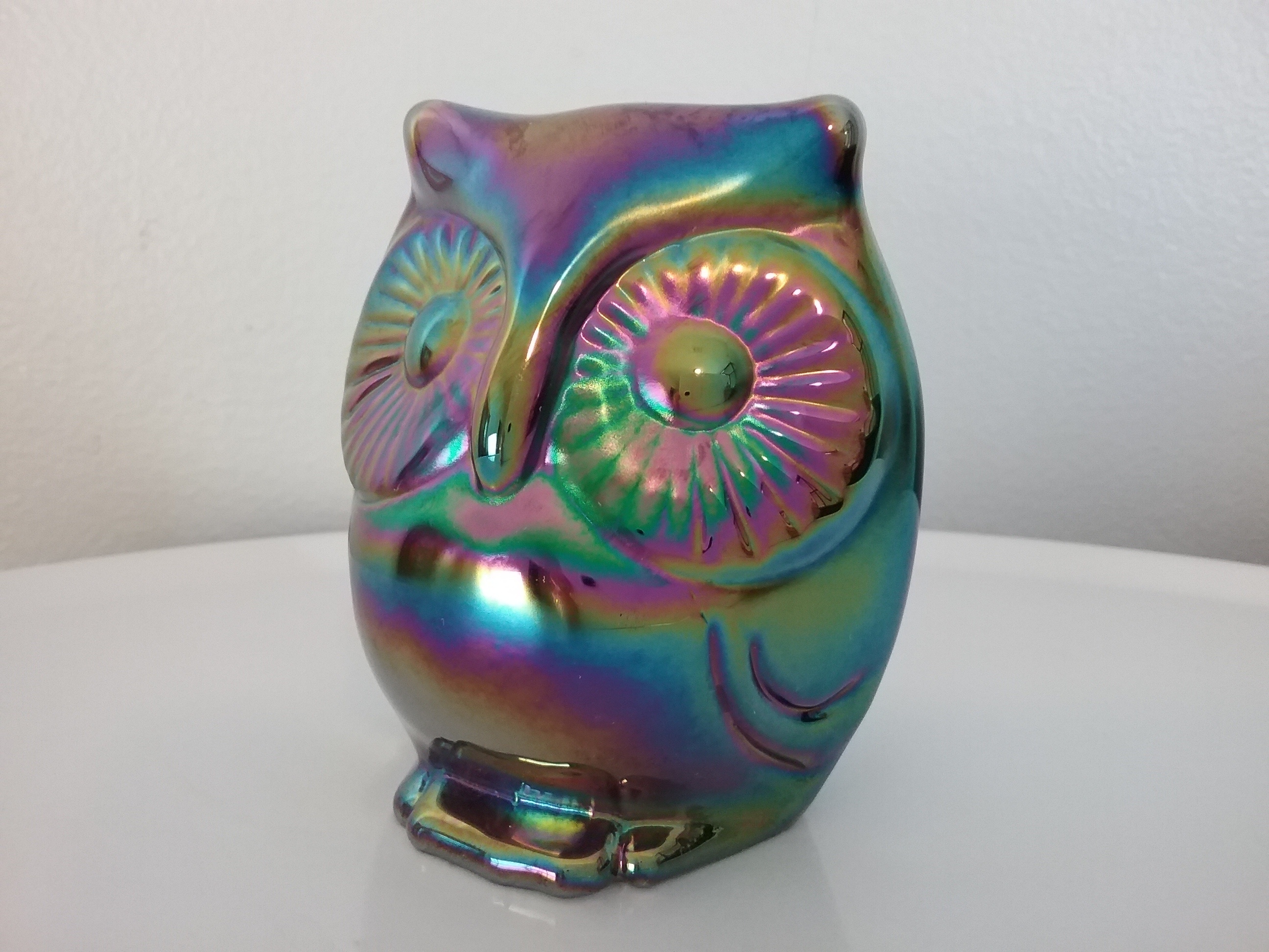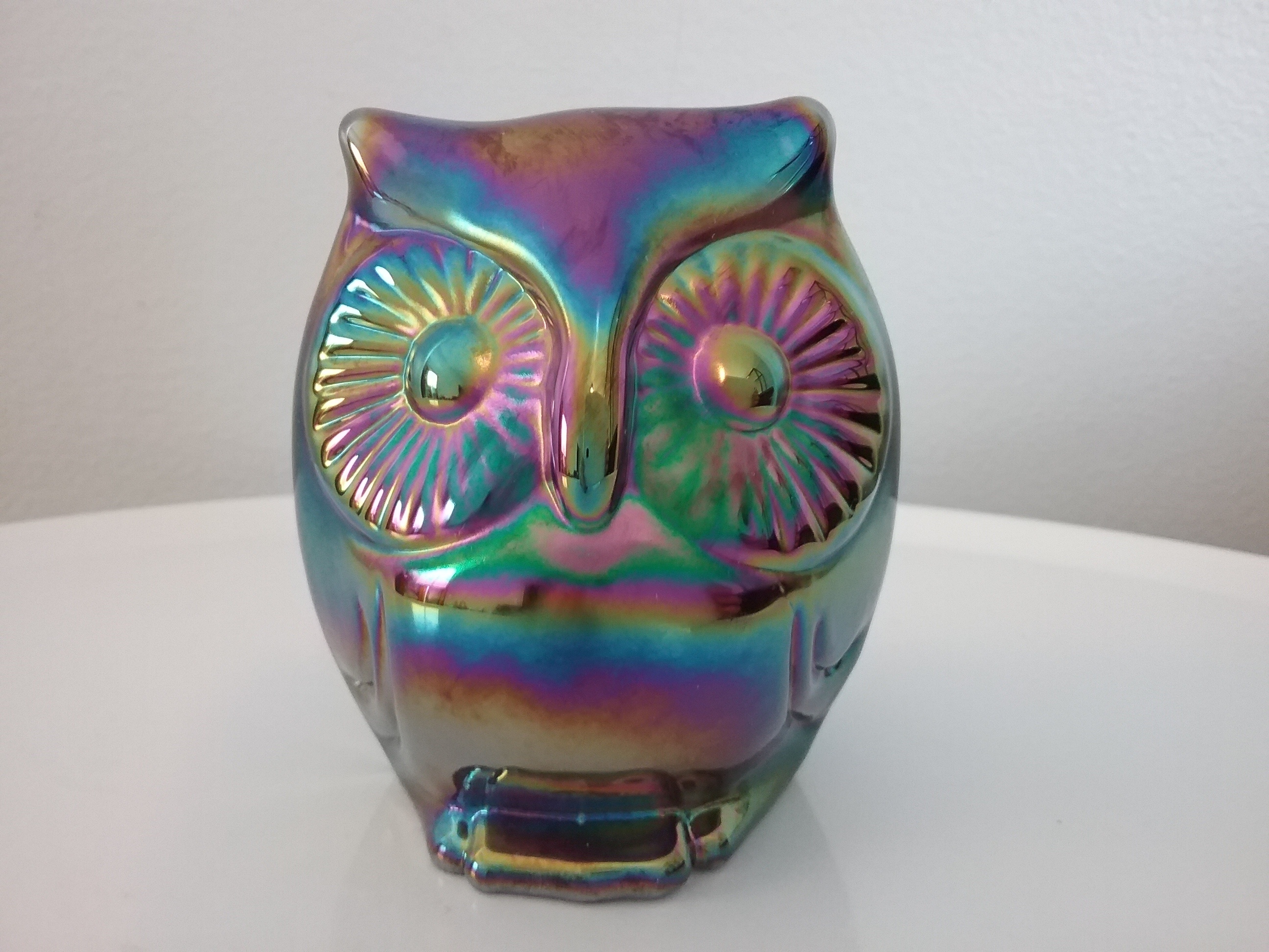 Striking iridescent shades of rainbow owl figurine! Simply gorgeous!