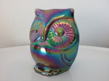 DejaVu thank you for your super praise for this colorful owl, it does have amazing rainbow like hues. The base color might have been cobalt blue if you look at the back, but it's really hard to tell. I was surprised this variety of Fenton owl has never been posted here, probably because their owls are premium priced...someday I'd like to get their large owl on a base, maybe if I see a sale