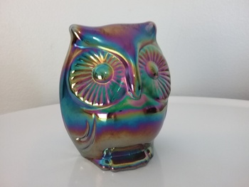 Phil the rainbow color finish is really exceptional isn't it, I've wanted a Fenton owl for awhile & this one grabbed my attention. Thank you for the love and splendid comment