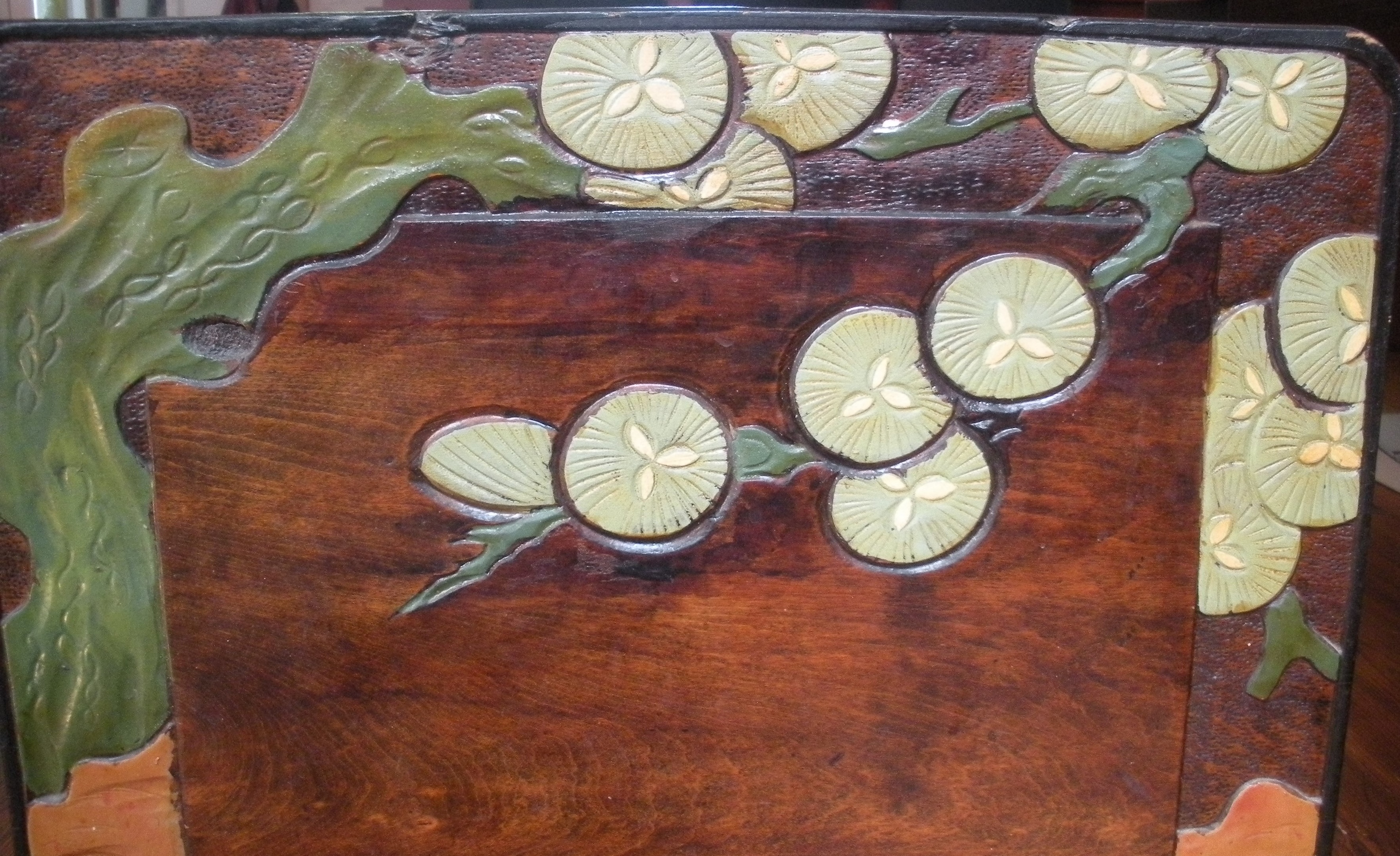 This beautiful Wooden Relief of tropical hardwood was a table top of what was once the top of a Japanese table. Long ago someone made a standing panel from the table top.