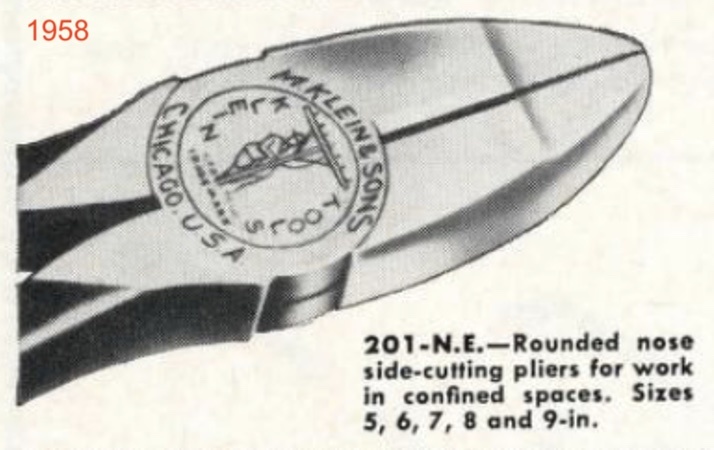 1958 M. Klein & Sons Model 213-9NE High Leverage Side-Cutting Linesman Pliers | ||