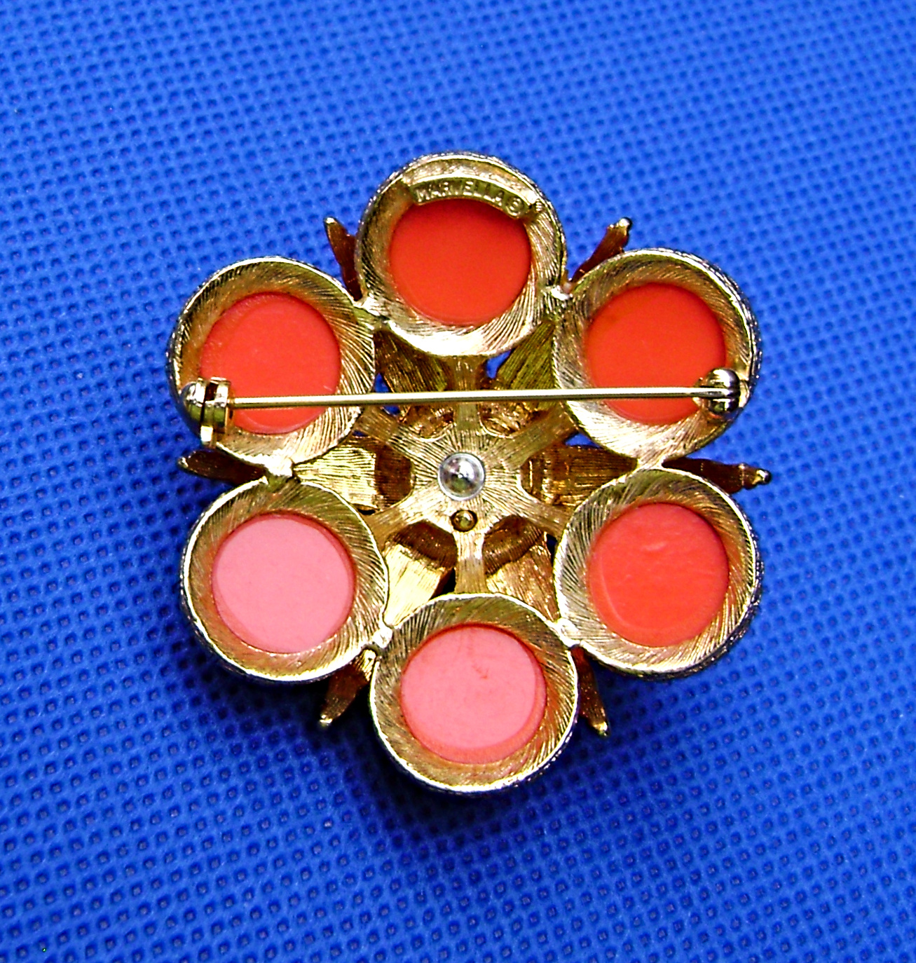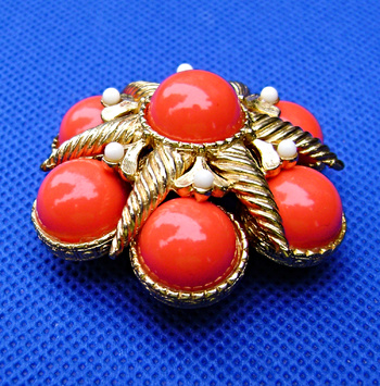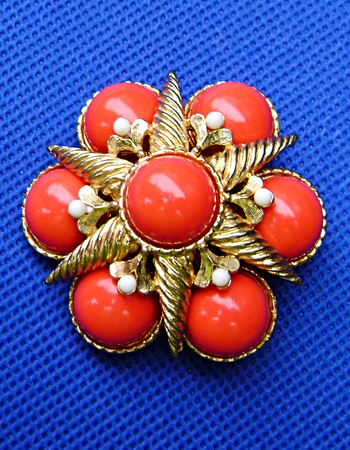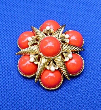 Vintage Marvella Coral Cabochon Starfish Brooch. That day at the thrift store the pickens' were slim. No Trifari, or other brands i like. Until, the attendant pointed out this brooch. It was dirty but signed.