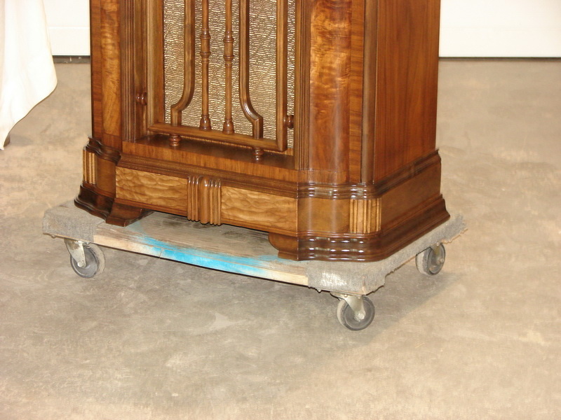 The cabinet was pretty straightforward in stripping and using toned lacquer in the popper spots [along the bottom areas.