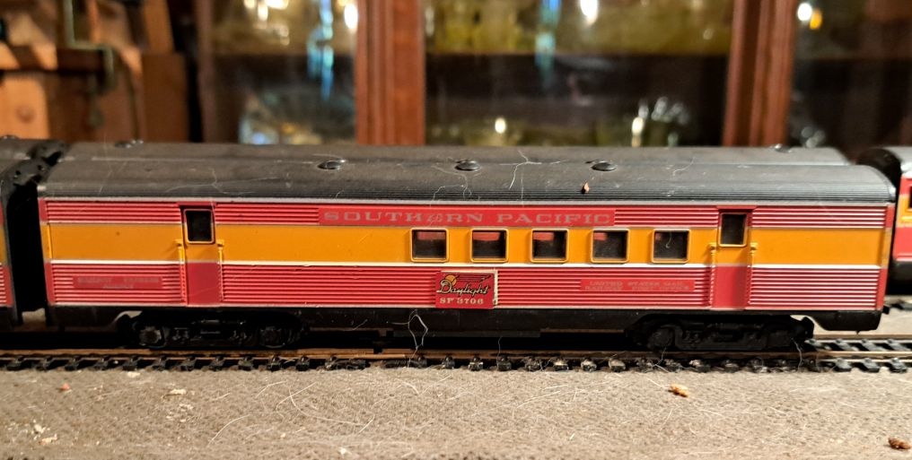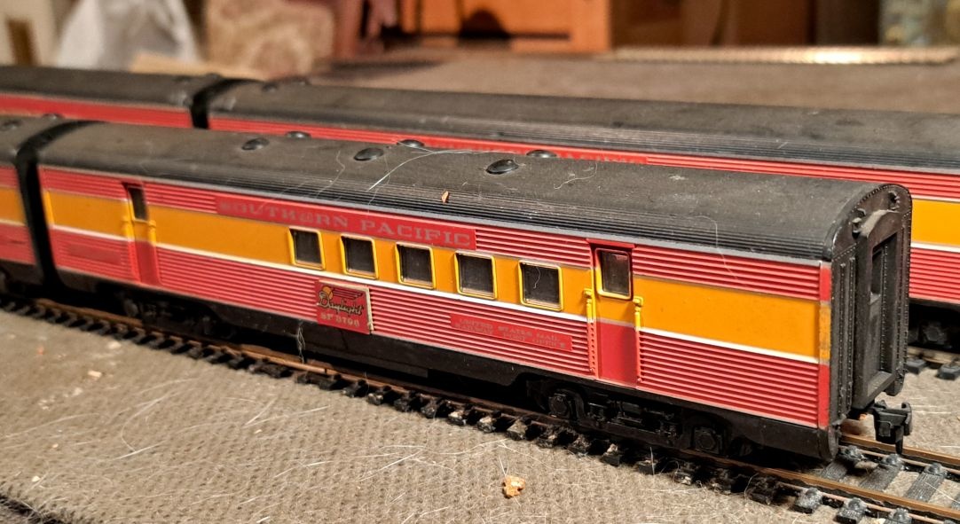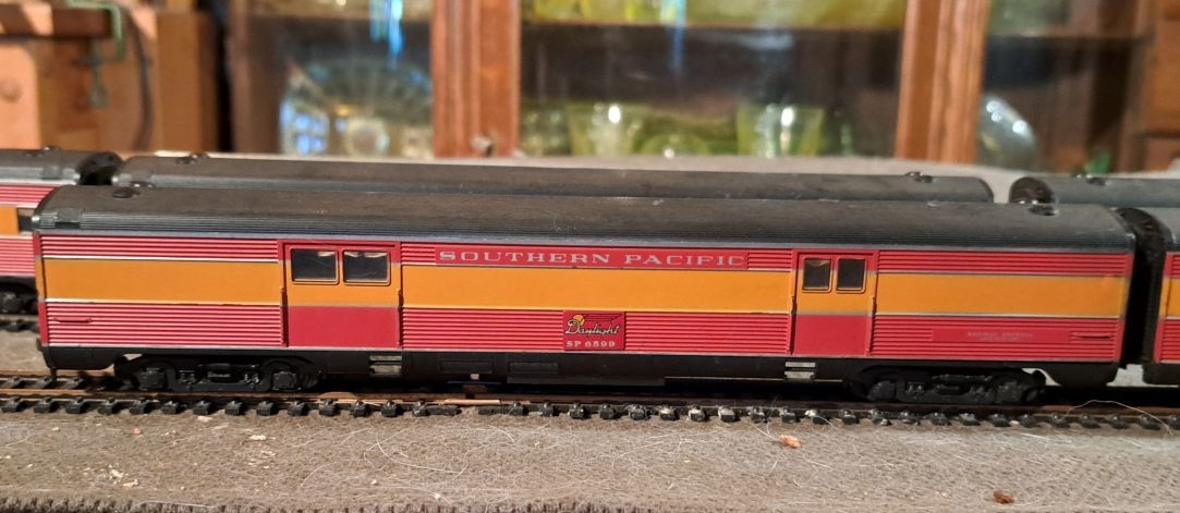 I think these are Athearn but I am not sure. Anyway I picked up a group of Southern Pacific Daylight passenger cars. Daylight was the name of the train, it possibly ran at night but you wouldn't want to miss anything. It ran along the coast between Los Angeles and San Francisco.