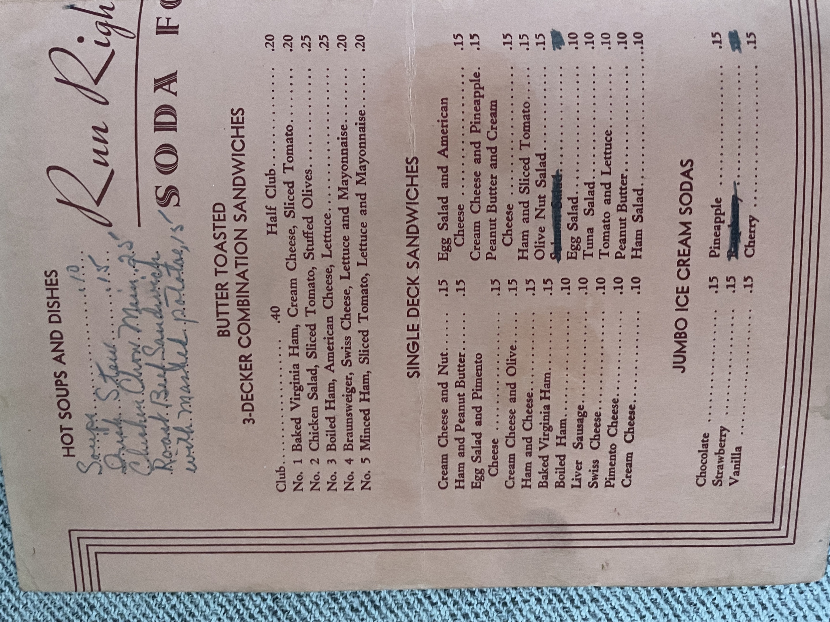 this is a 1950s menu from Reads drugstore Baltimore, Maryland at Howard and Lexington Street where the 1955 Sit In’s took place