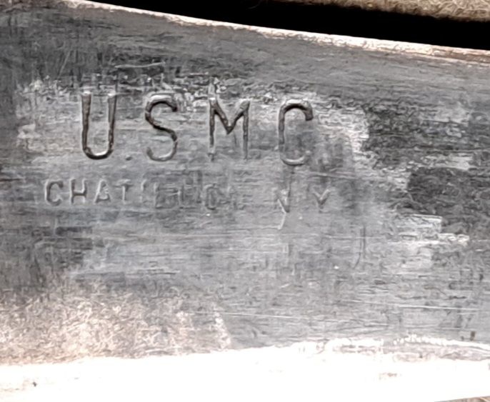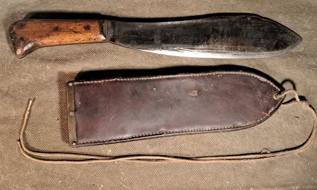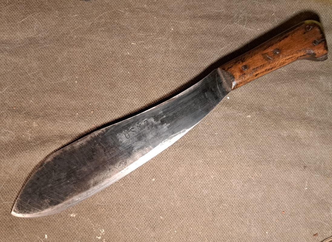 Moving on you can get an idea of the size based on the handle but I will add the blade is 11 1/2" long and it is a very heavy blade. Which reminds supposedly the corpsmen were using these to make buildings like Gilligan's Island. As the USMC in WWII was fighting in jungles these were being used by everyone.