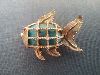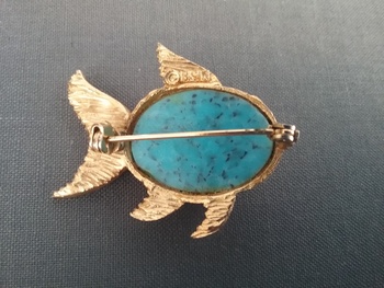 DejaVu, BSK did have a great idea putting a rhinestone net over this fish, it offsets the turquoise stone so well and has double meaning for a netted fish