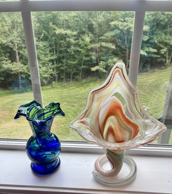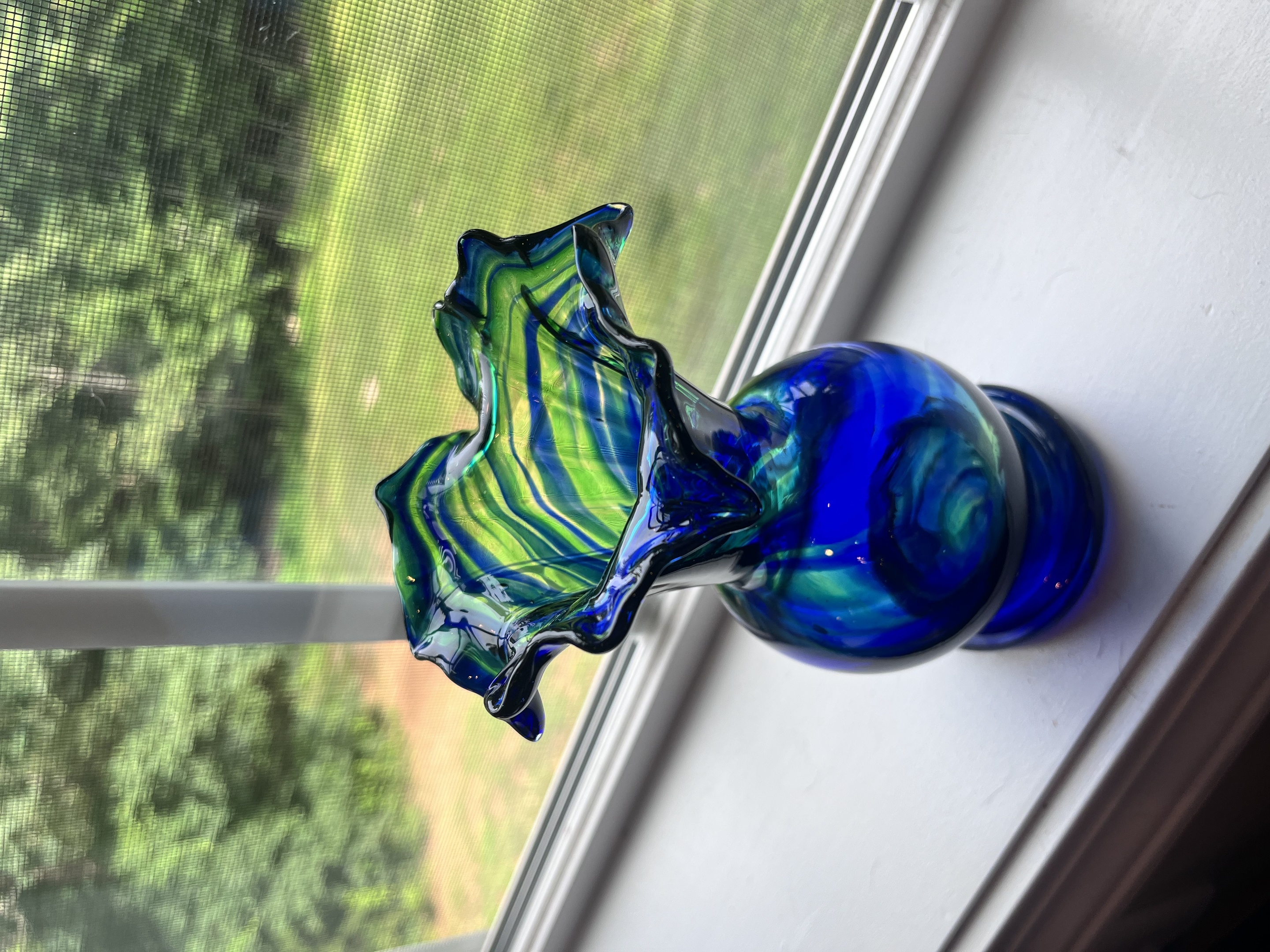 Handed down from my Grandma. Blue one is Smith’s Old Time Hand Blown Glass. The other appears to be a cheap knock-off, but I love it & it’s my fav so I shared.