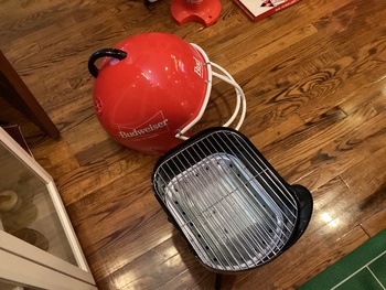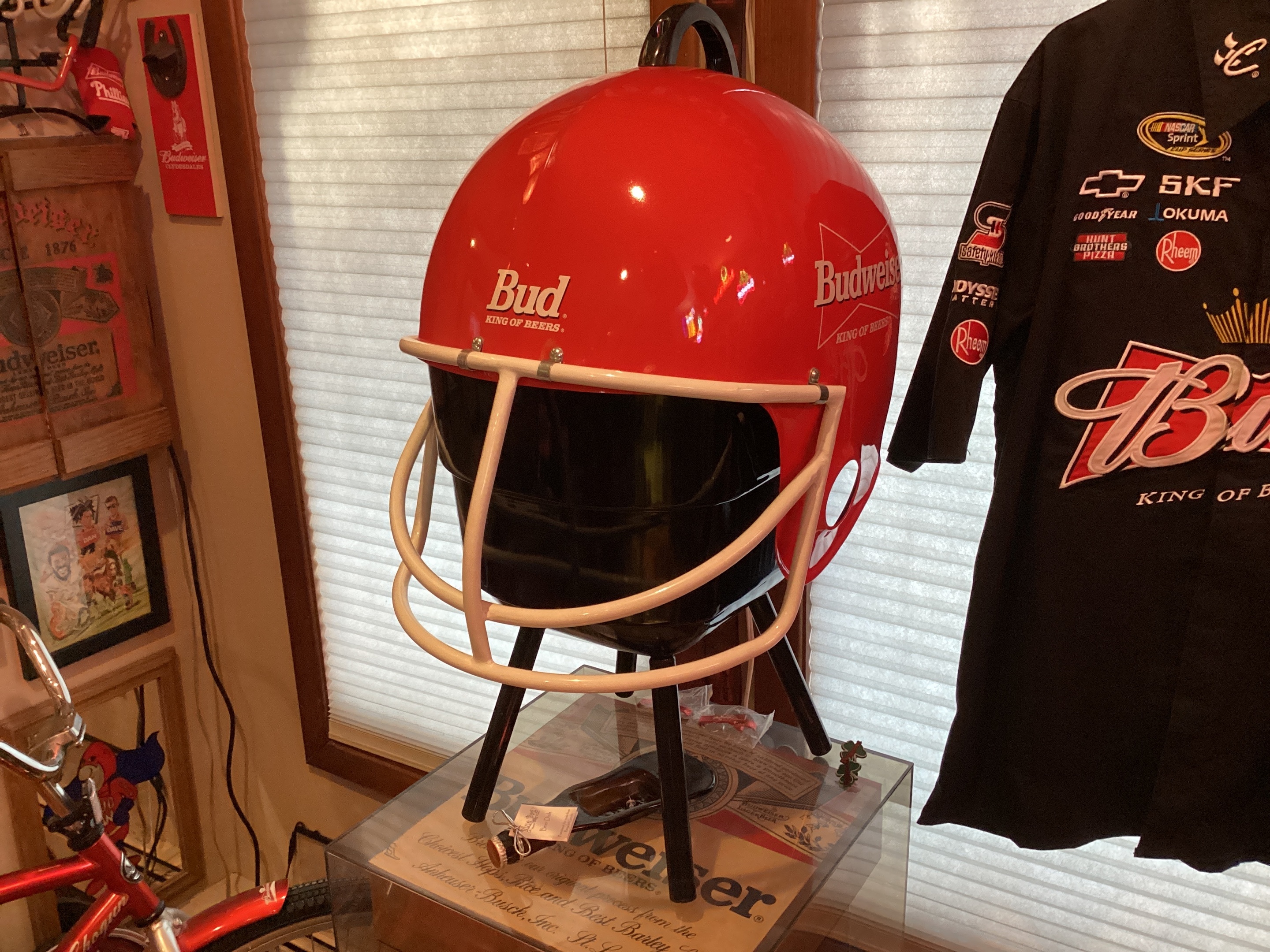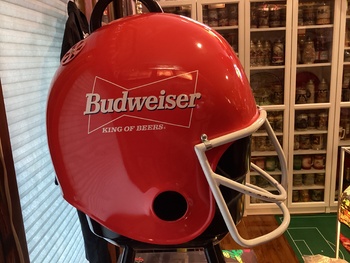 This is a Budweiser football Helmet. It is 28” tall and 20” deep. I never used it. Of course it’s all metal .