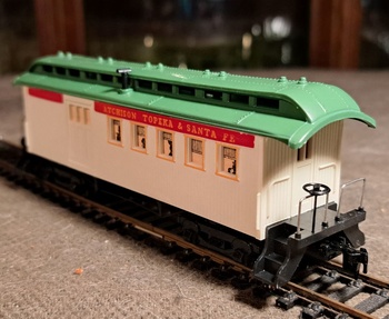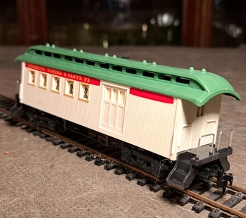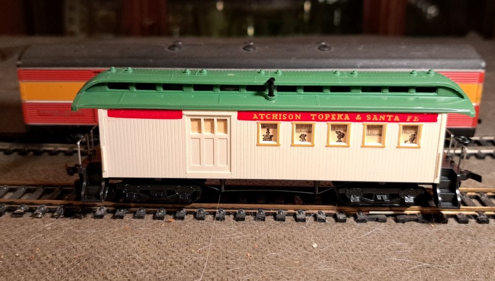 This is a rather nice Tyco car. It has some nice details such as the wire rails and simulated passengers in the windows. These were wooden cars in real life from the days when there were huge train accidents because the train cars would splinter.