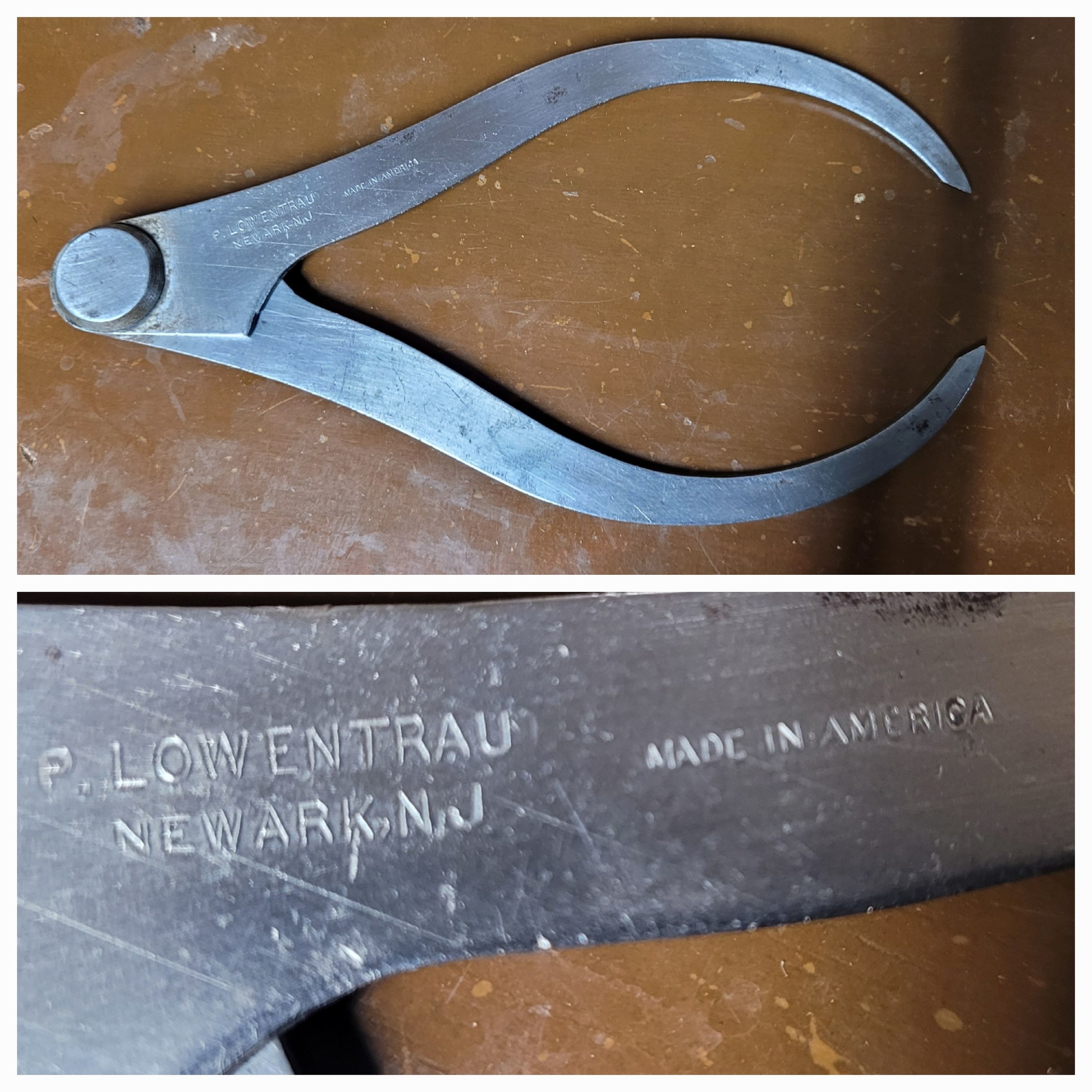 I often buy things on instinct and look at them closer later. This was the case today. Garage sale find for $1. I knew they were old and in good shape. These Calipers had a little pitting and rust, so after cleaning them up some I could read the name clearly. What caught my attention right away was the "Made in America". The T at the end of the name was not stamped very good and is barely visible.