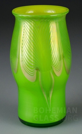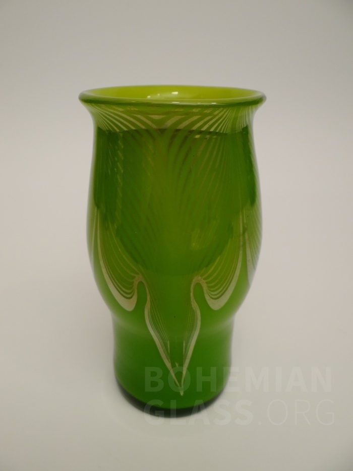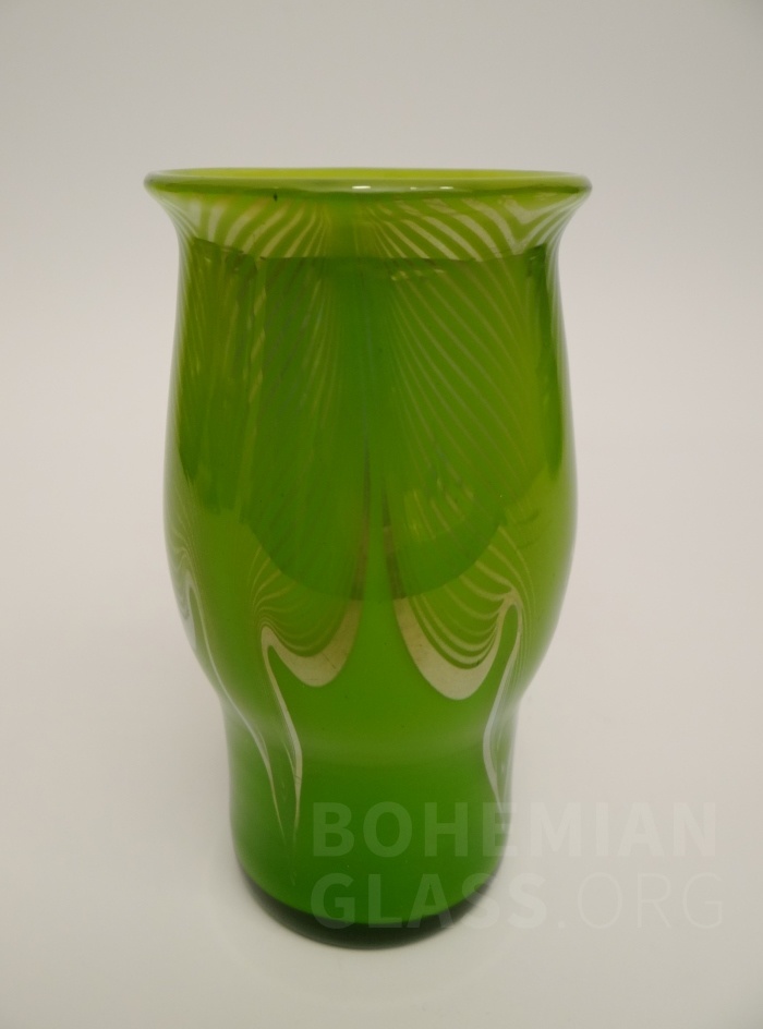 This is Loetz decor Hubertus Gre 1420, PN II-1149, circa 1904, dimensions: 13 x 7.2 cm. Compare with decor Luzifer Gre 1406.