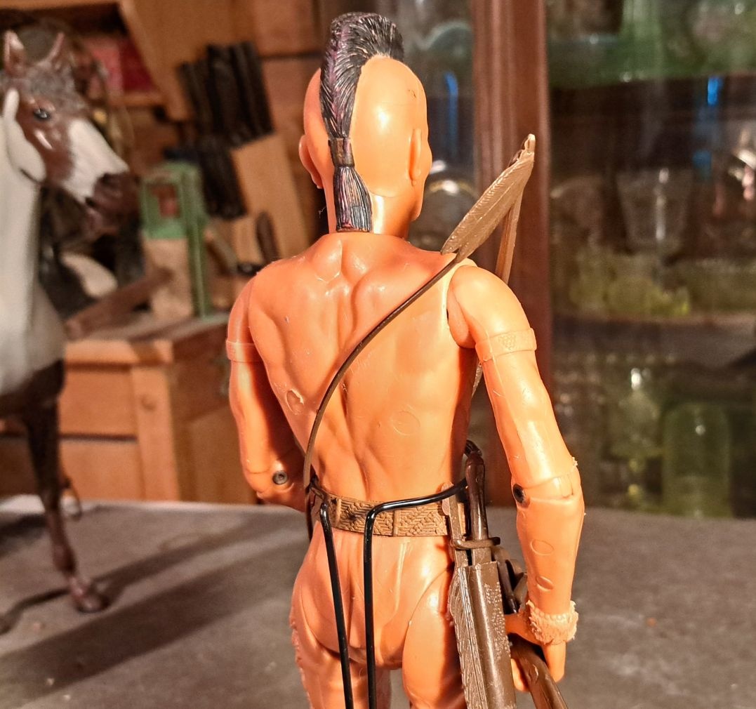 Picked up another red skin tone Fighting Eagle. These were only sold in 1967 (or was it 1968) thus fairly rare. Fighting Eagle was later reissued but with a caramel-colored body, arms and legs. The head still had the same coloring so with the later figures it is a bit of a mismatch. Sadly this one is missing the earrings but you can't have everything.