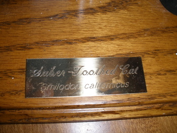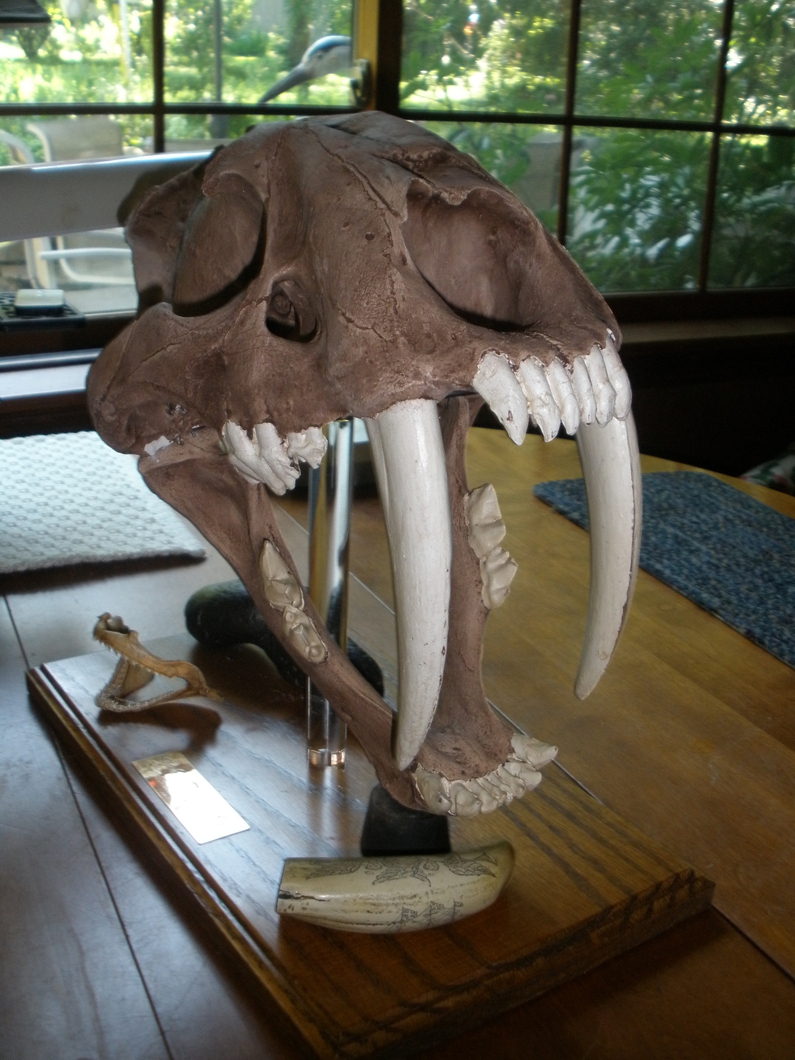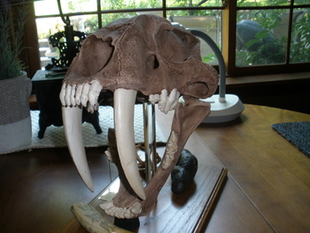 Given to me by my aunt, as she knew that I liked fossils. My uncle (her husband) had passed away several years before. I never even knew that he had this. I would have liked to have asked him about it. It seemingly is mounted professionally and has a number of white ink numbers on the inside of the lower jaw, as well as the windowed display case that it is displayed in.