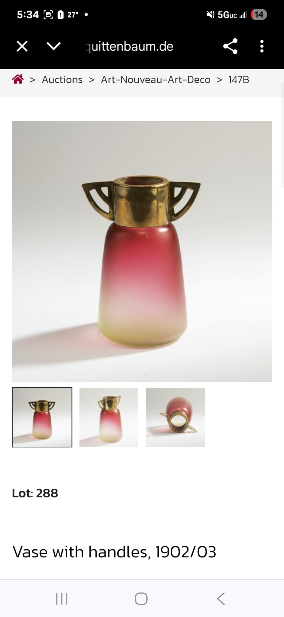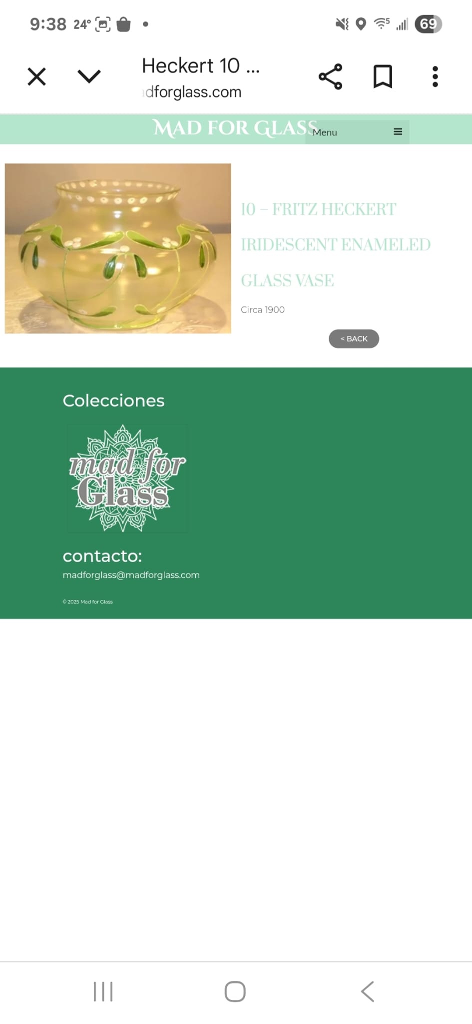 A few weeks ago I purchased this vase, thinking it would be attributed to Fritz Heckert as I have found a vase with a similar decor on the "Mad for Glass" website (under the category "Fritz Heckert"). However, yesterday I coincidentally came across three other examples of vases with a metal frame that looks identical to the one on my vase. It appeared on a well known auction website, as well as in another post on this website (title: "Vase with metal mount 1902-1903. Lötz, School of Koloman Moser, possibly Antoinette Krasnik? (H:17 cm.)"), and then third, it appeared on the Cornell Glass website (title: "Vase, Red and Green Glass", Object number: 99.078.126). Unfortunately I can't share screenshots of all three metal frame examples as I can only post four pictures.