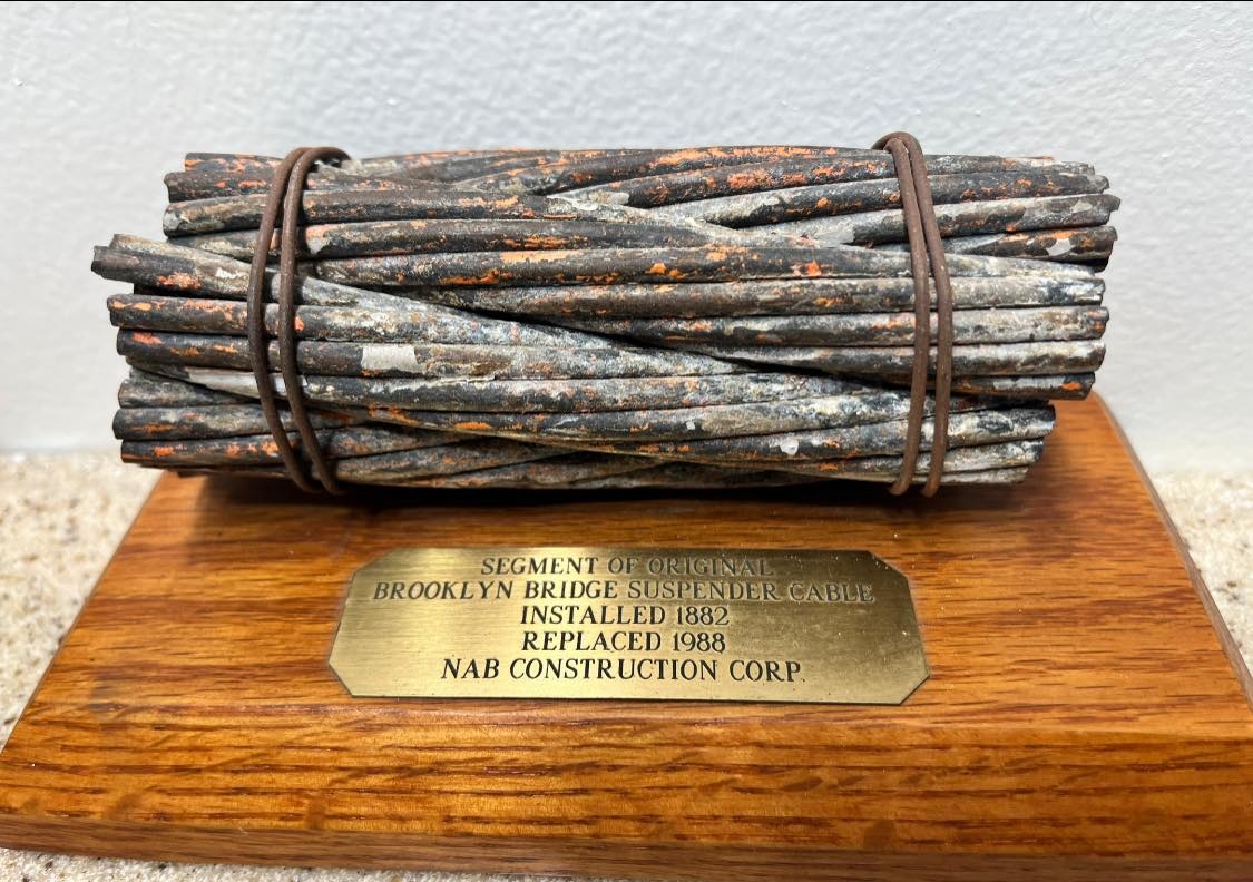 NAB Construction Corp. of Queens, New York was assigned to the rehabilitation project, lasting between four to five years. It is possible the company saved and handed out fragments of the original cables to employees who participated in this momentous achievement.