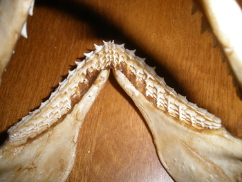 Found this interesting shark skeletal jaw on the beach. It is interesting how the teeth are in rows that advance as the animal grows in life. If unfortunately, it loses a tooth, don't worry, in a short time a whole new row of fresh razor-sharp teeth will take the place of the dull ones.