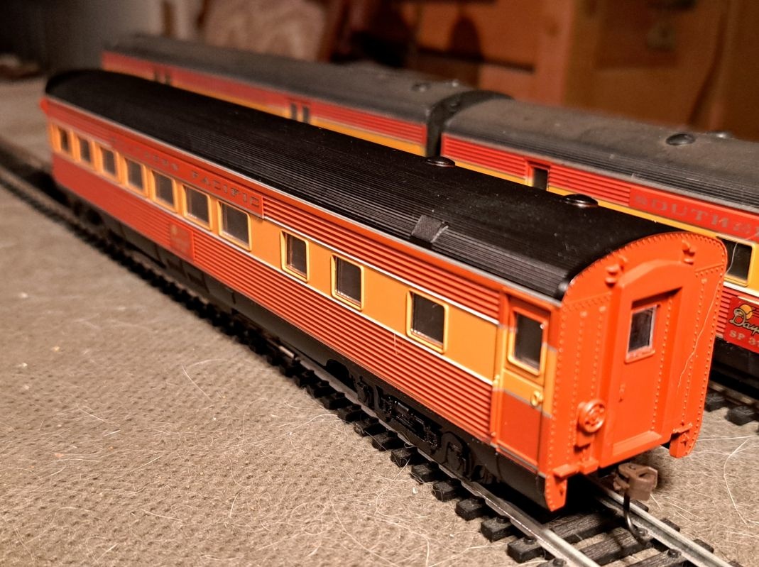 The Athearn Ready to Run series are a bit fancier than the kits. Now as the Observation car is fancy car for the train this makes sense. The other cars in this train are the kits. This car goes on the tail end of the train thus the pointy end as seen in photos 1 and 4. It was the luxury car. I believe it had some rooms for sleeping, dining and mostly sitting and a great view.