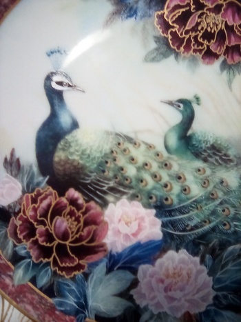Peacocks garden scene. In Lily Chang words -