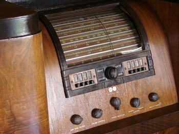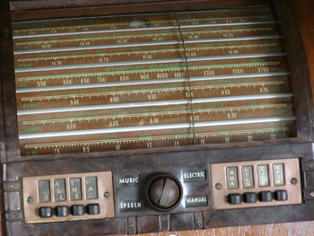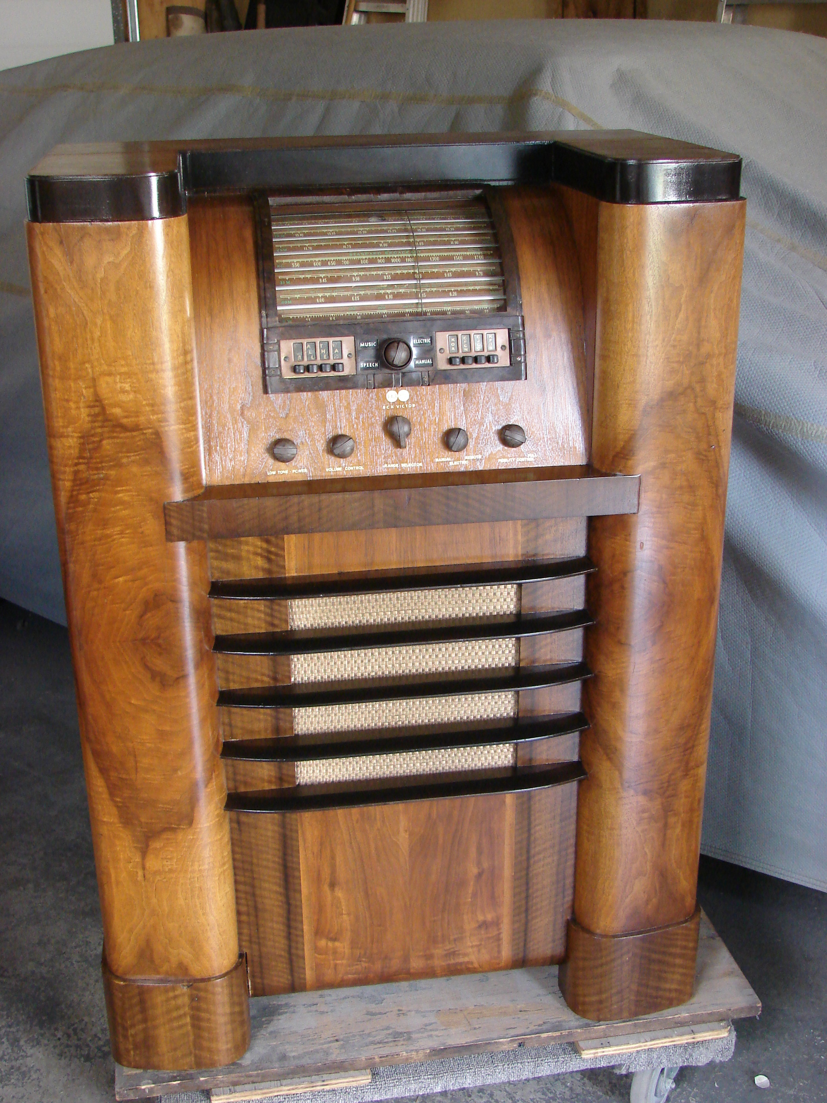 It took a lot of time to go through the chassis and get everything working,although the gears for the electric tuning are worn and the dial won't stop exactly where it should. It sound is very good and the cabinet is huge It was designed by RCA's top designer John Vassos.