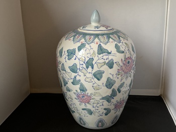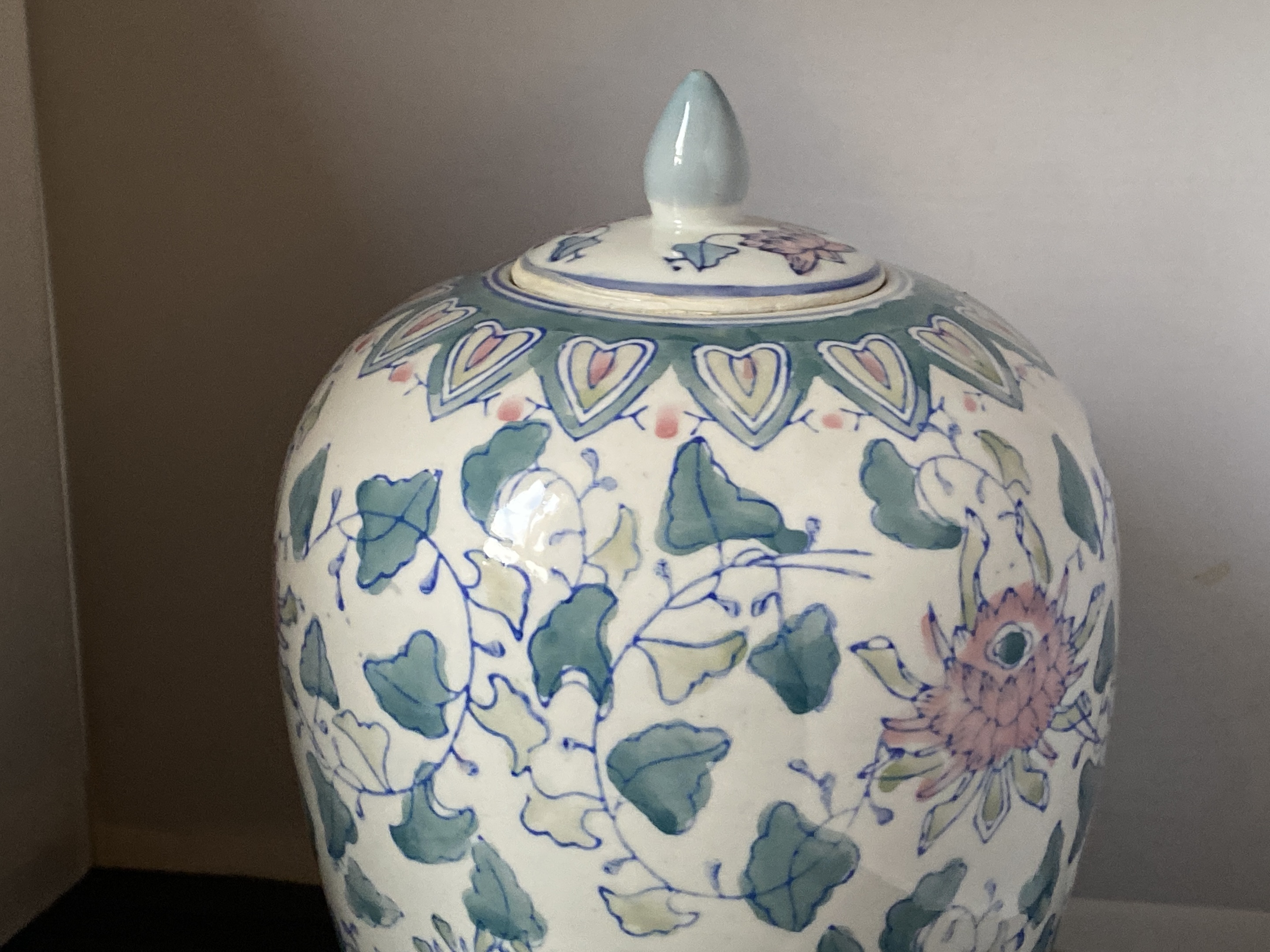 Hello I’ve just rediscovered this lovely big ginger jar with not a scratch on it, it’s very big but I’ve no idea about how old it is but I think it’s Chinese,.