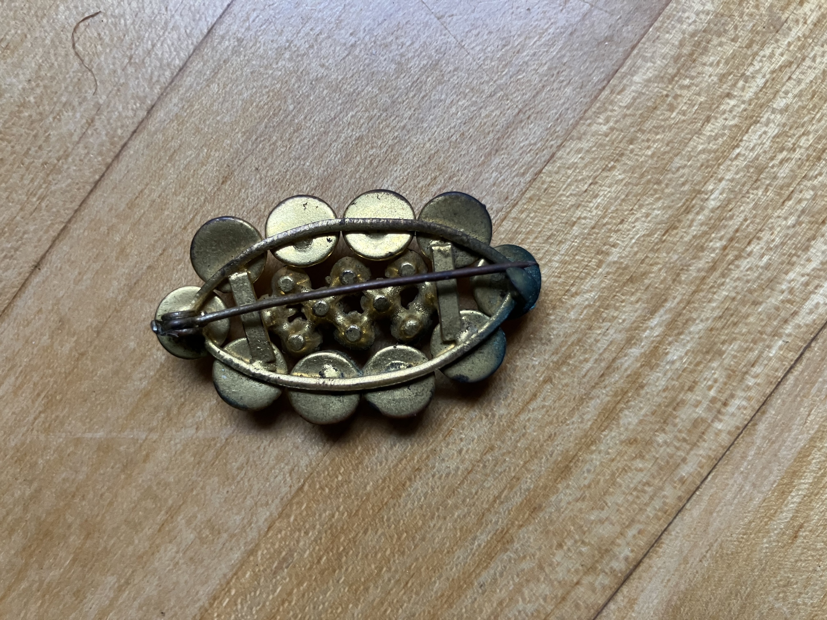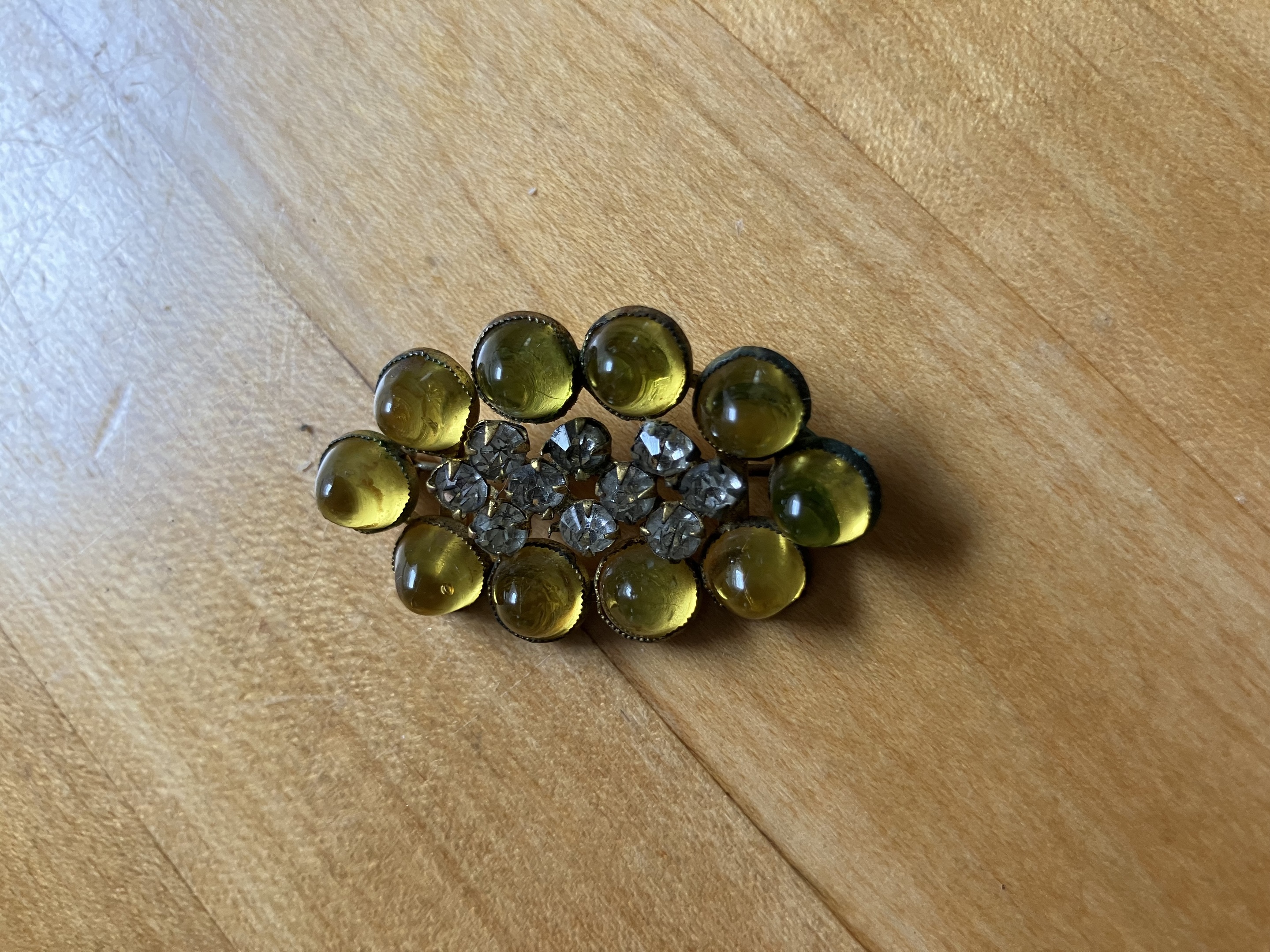 Sparkly brooch, maybe deco, maybe Czech!!! I love the colors. It was one dollar, so it had to come home with me!