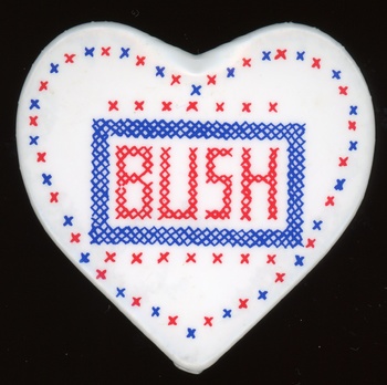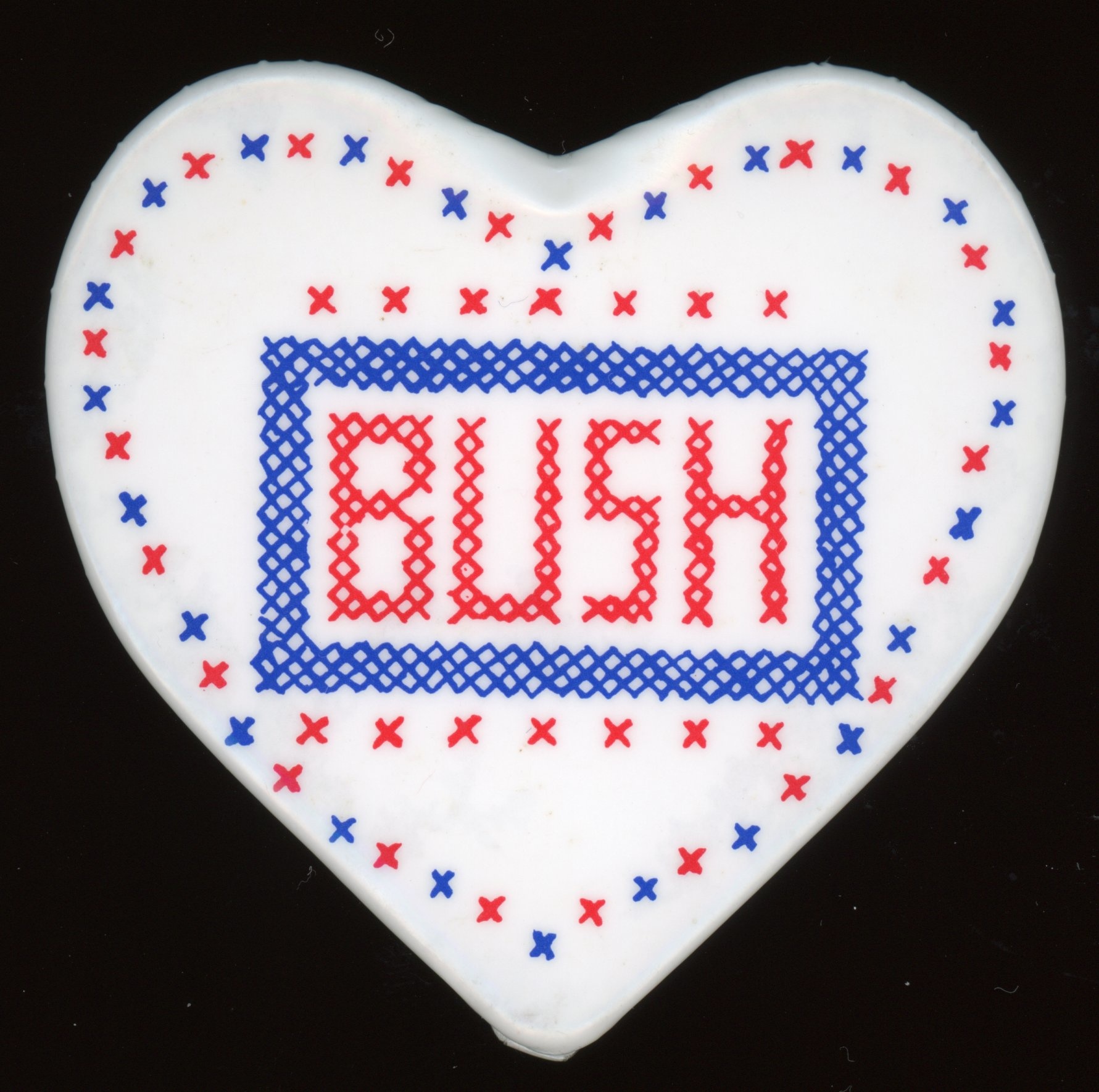 Unusual heart shaped pin made for George Bush Sr.'s campaign in 1988. It's also made from a thicker than usual metal and front material