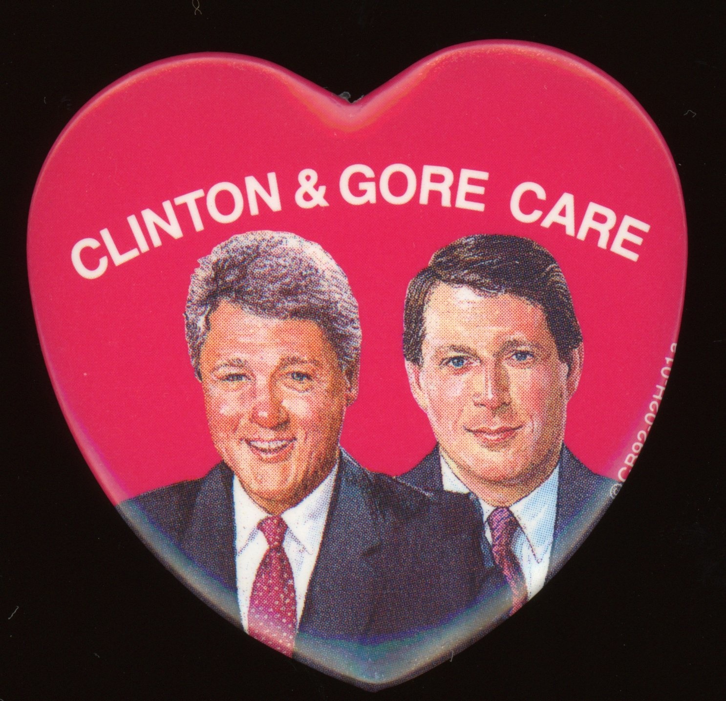 Bill Clinton and Al Gore Care Heart Shaped Pin - 1992 | ||