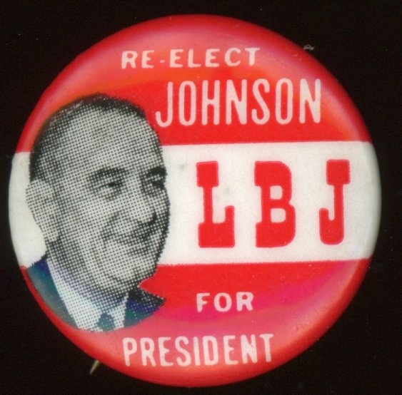 This tiny 1/2 inch pin seems to be uncommon. It was for LBJ's election before he dropped out of the race after the New Hampshire Primary results.