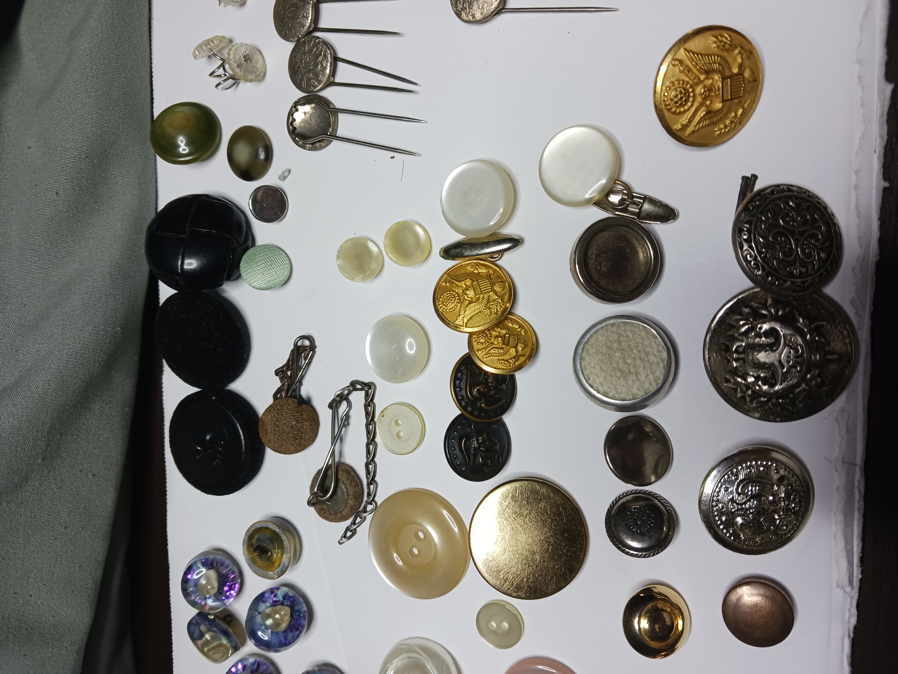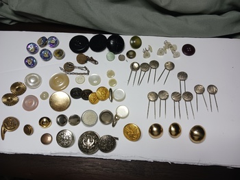 Just old fun buttons old military and some fashion all ventage, always fun to find new things and add to an existing collection. After all the collecting has been collected , just switch to a different type of collection their is lots to choose from ."so get collecting".