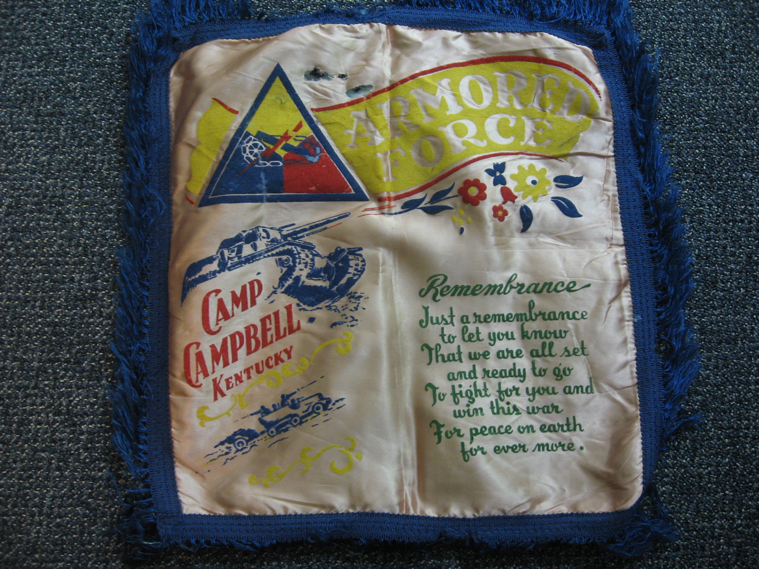 My aunt surprised me with these last weekend. They are pillow tops sent to my grandmother by my dad from Camp Campbell Ky., one of the camps he trained in during WWII. I never knew they existed until last week! Going to have them mounted soon!! Thanks for lookin!! Rob