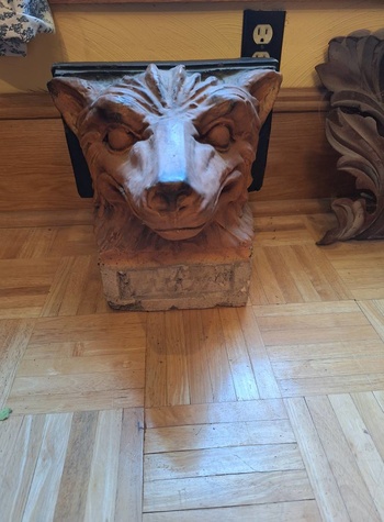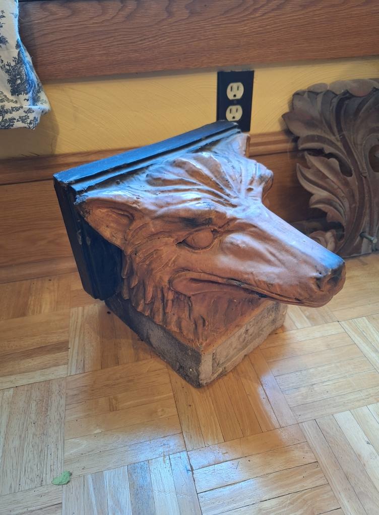Rare ca 1914 polychrome terracotta corbel depicting a fox head, there were two of these, I owned one found in a Midtown antique shop around 1980 that I later sold and bought this one years later, so I know there were two of these on a building facade in NY City that was probably demolished around mid 1975, and likely a commercial building where the projection of these would have supported a pediment or column of bricks etc.